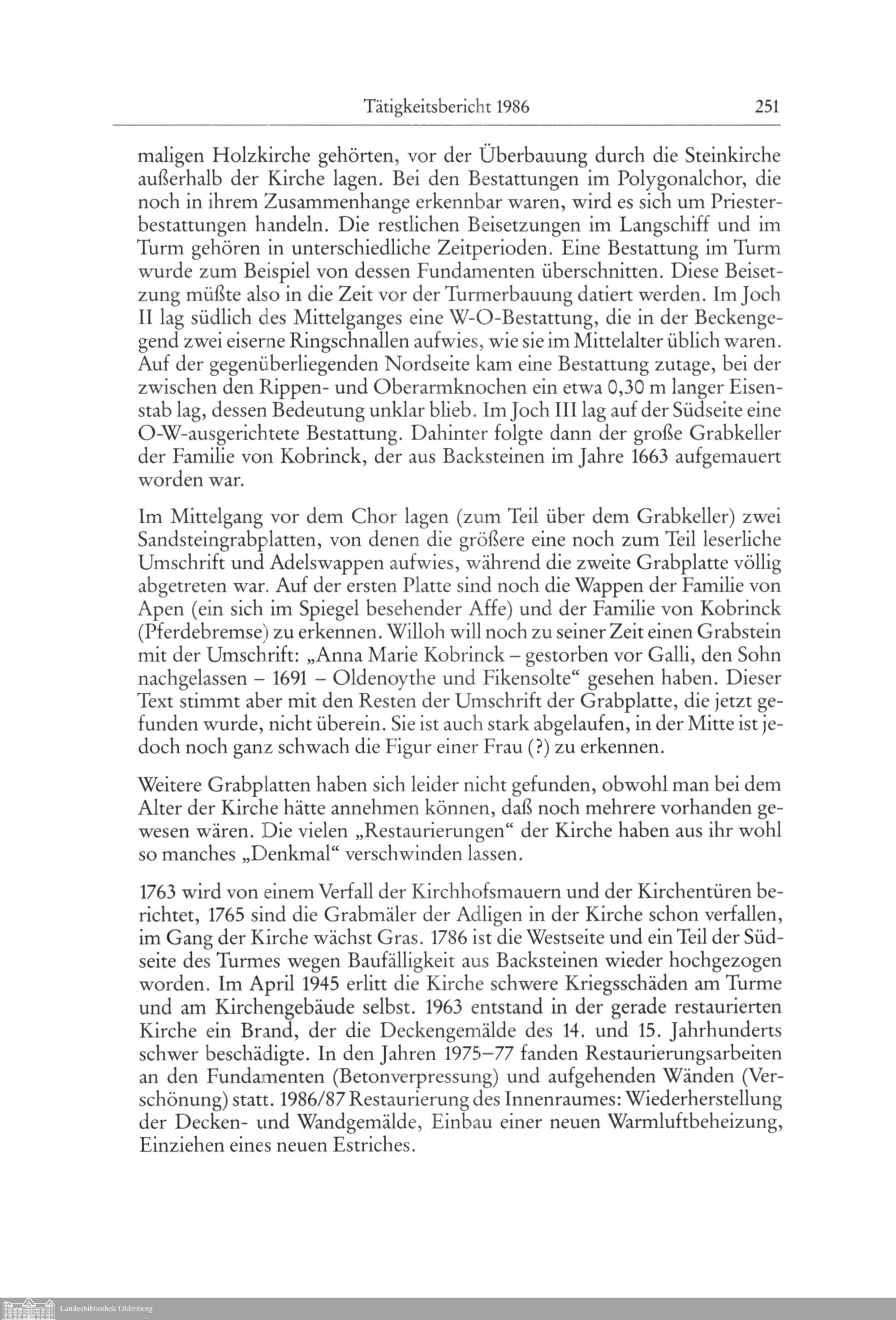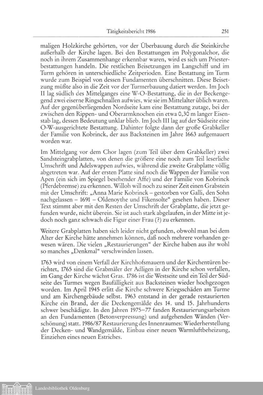 Tätigkeitsbericht 1986. Niedersächsisches Landesverwaltungsamt, Institut für Denkmalpflege,...
