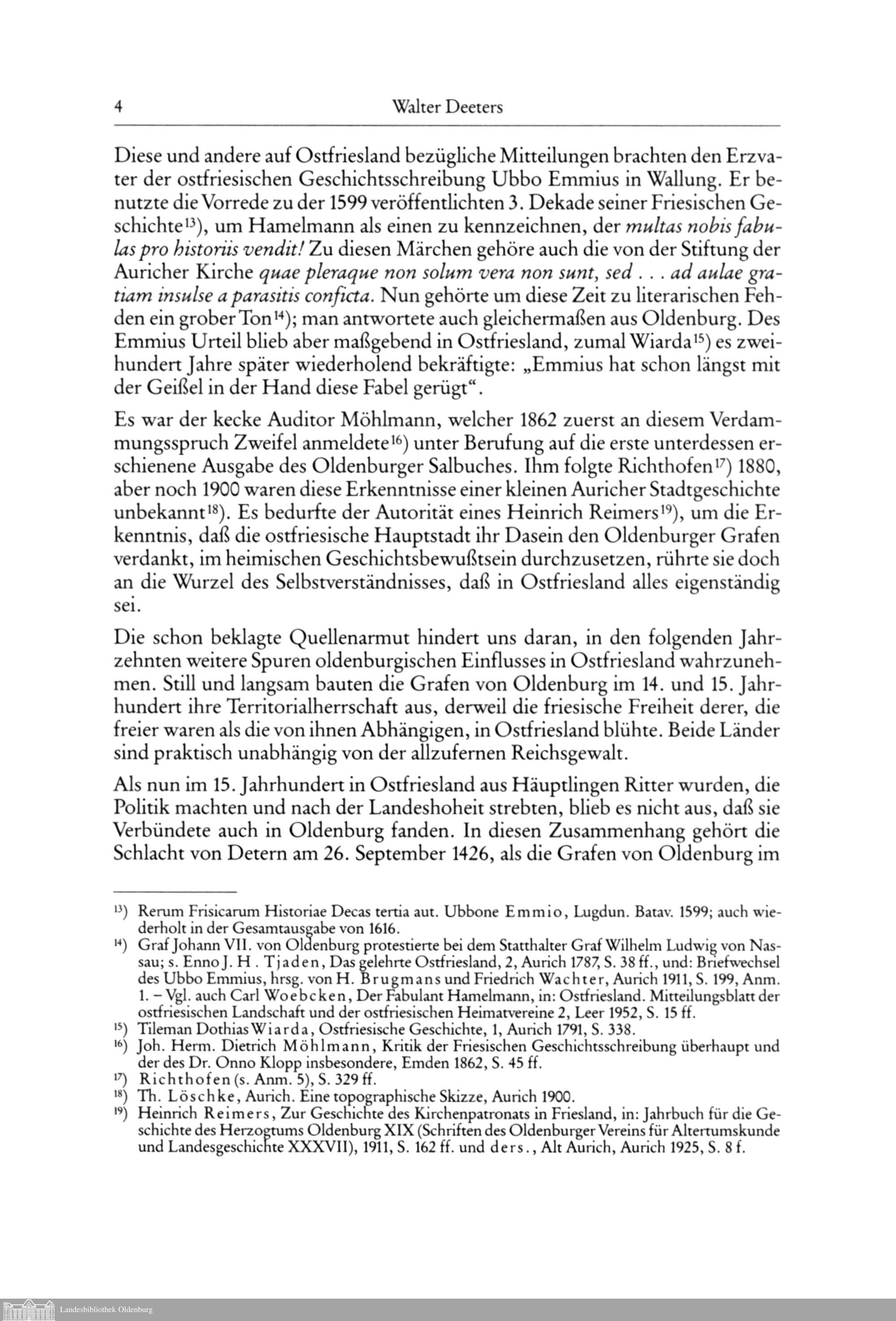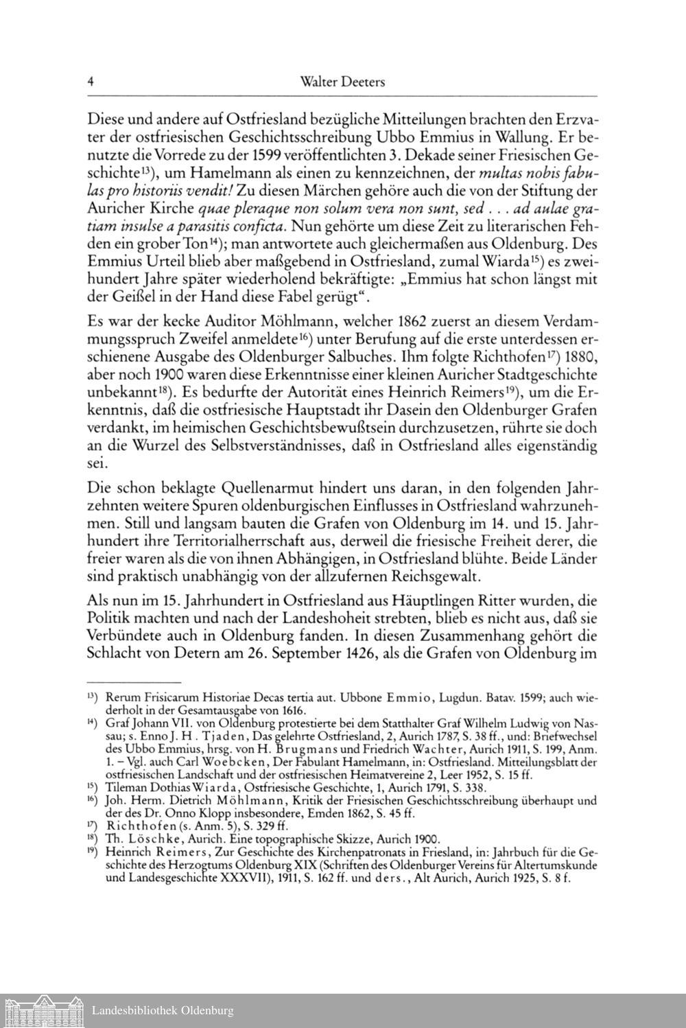 Walter Deeters: Achthundert Jahre oldenburg-ostfriesische Nachbarschaft