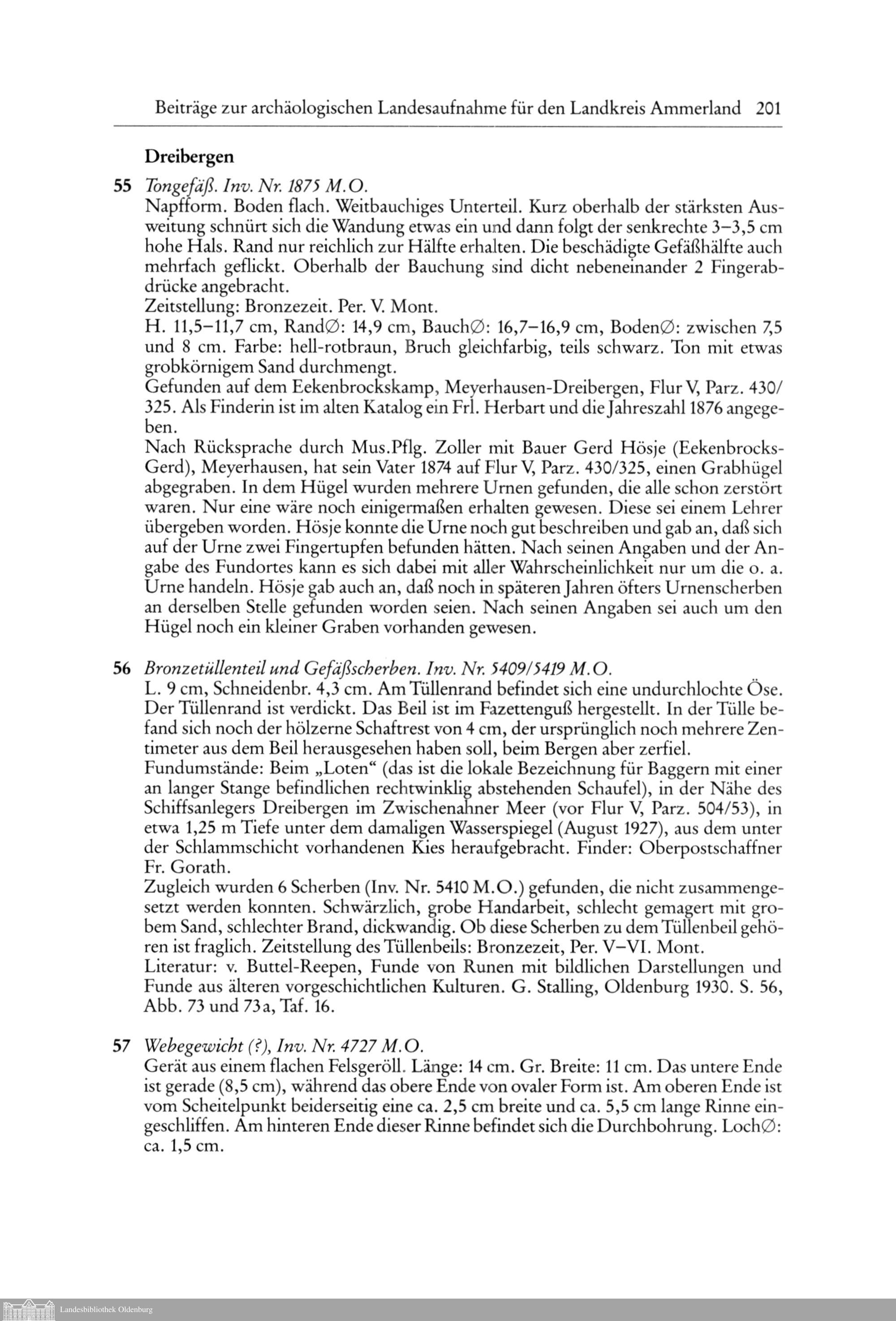 Beiträge zur archäologischen Landesaufnahme für den Landkreis Ammerland, Gemeinde...
