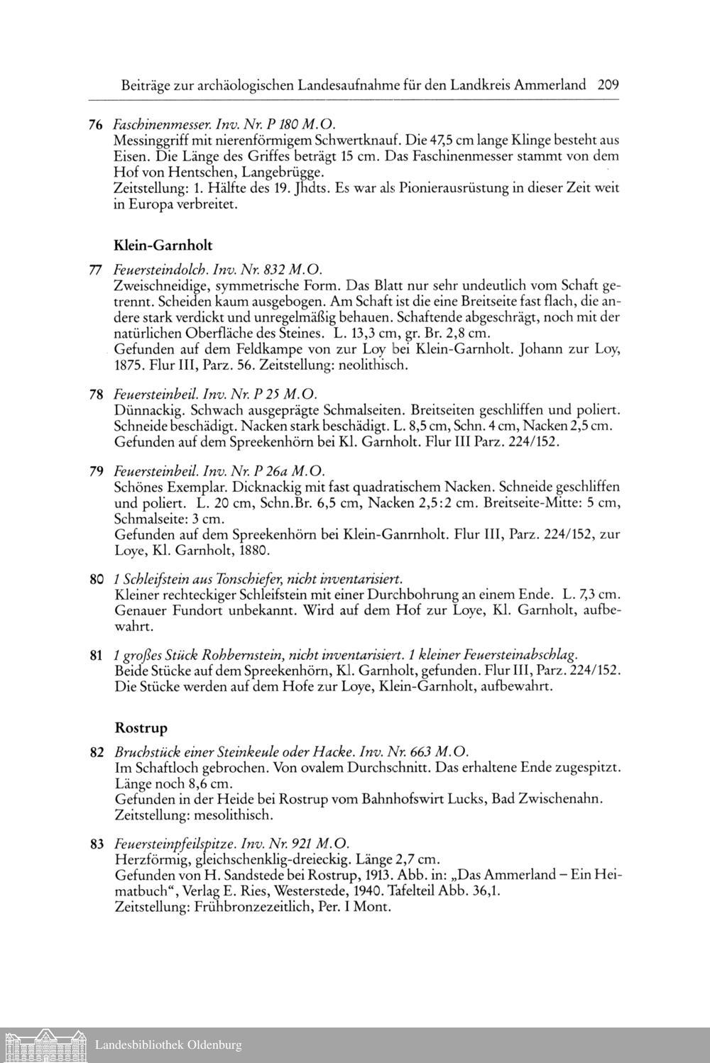 Beiträge zur archäologischen Landesaufnahme für den Landkreis Ammerland, Gemeinde...