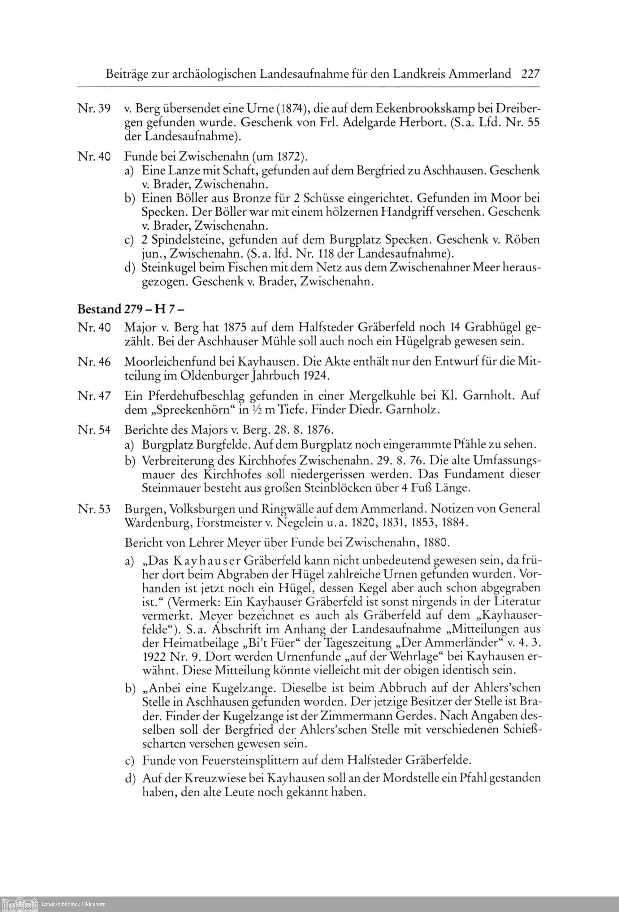 Beiträge zur archäologischen Landesaufnahme für den Landkreis Ammerland, Gemeinde...