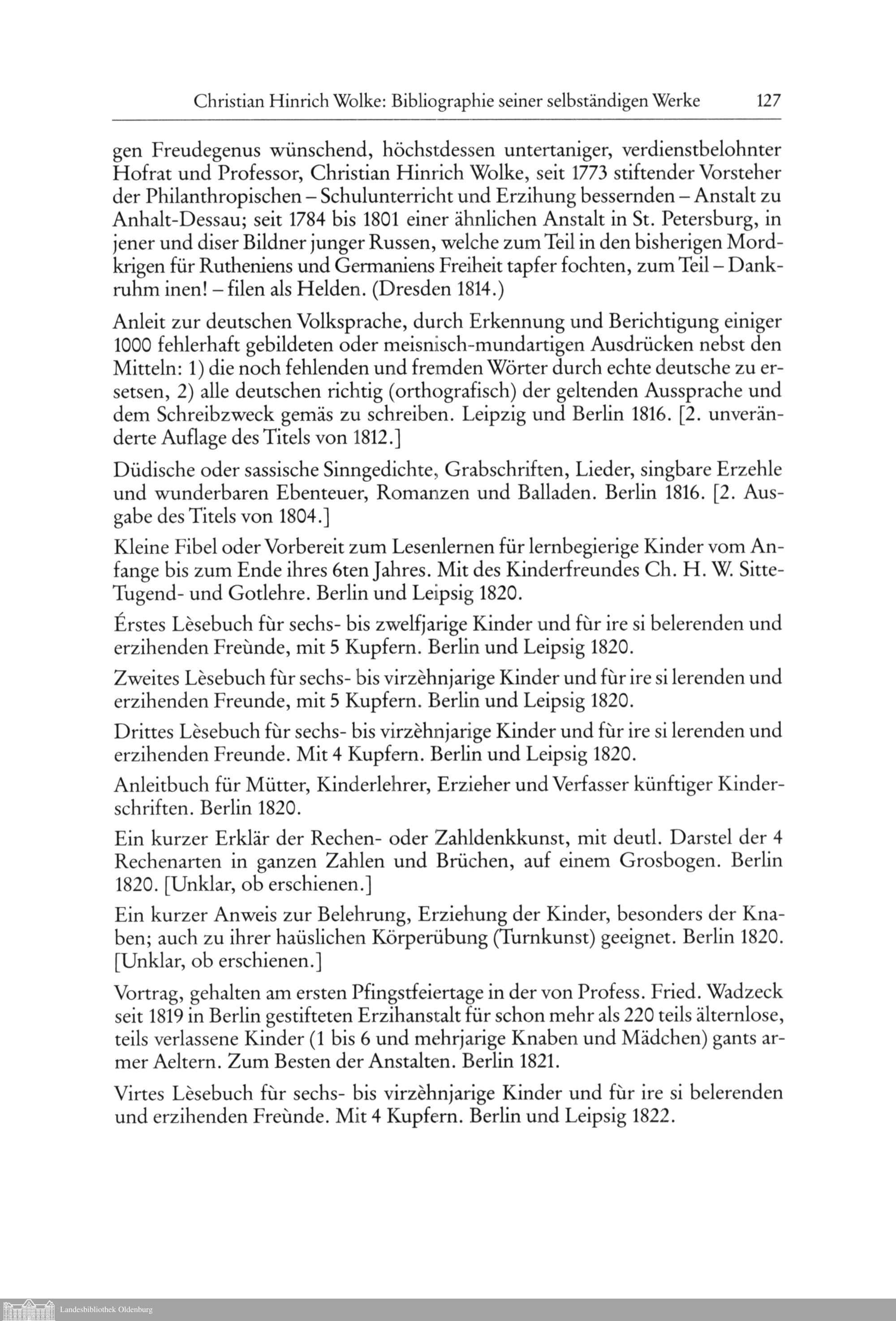 Wilhelm Topsch: Christian Hinrich Wolke. Bibliographie seiner selbständigen Werk...