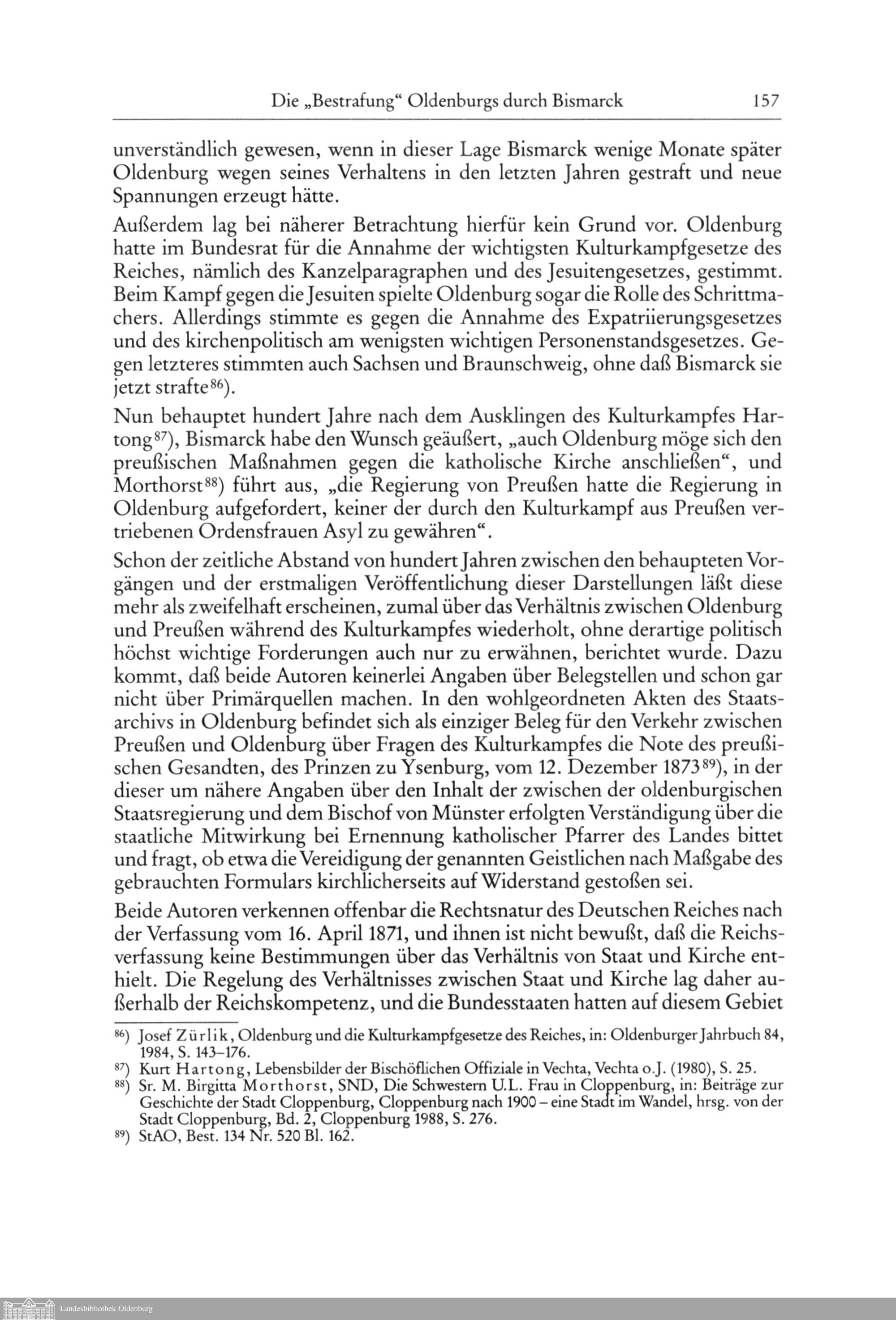 Joseph Zürlik: Die "Bestrafung" Oldenburgs durch Bismarck