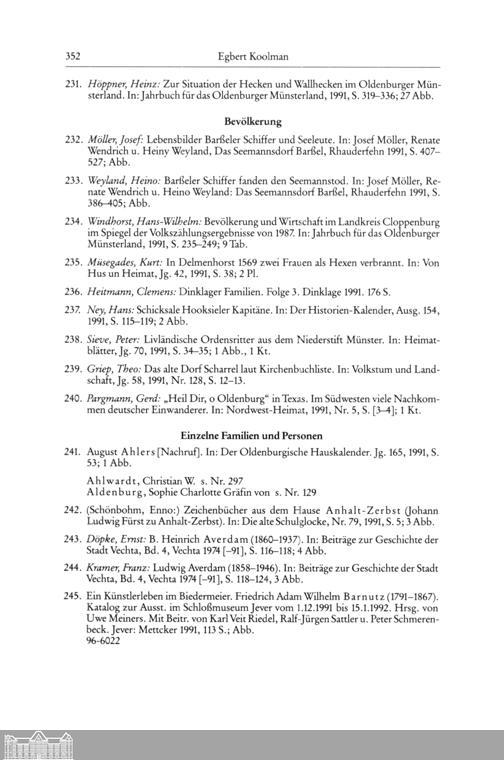 Egbert Koolman: Oldenburgische Bibliographie 1991. (Mit Nachträgen aus den vorhergehenden...