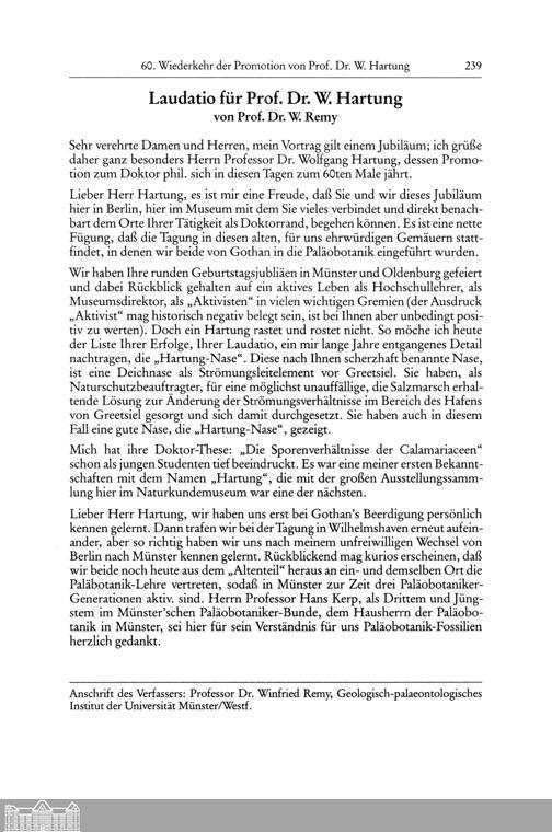 Laudatio für Prof. Dr. W. Hartung von Prof. Dr. W. Remy