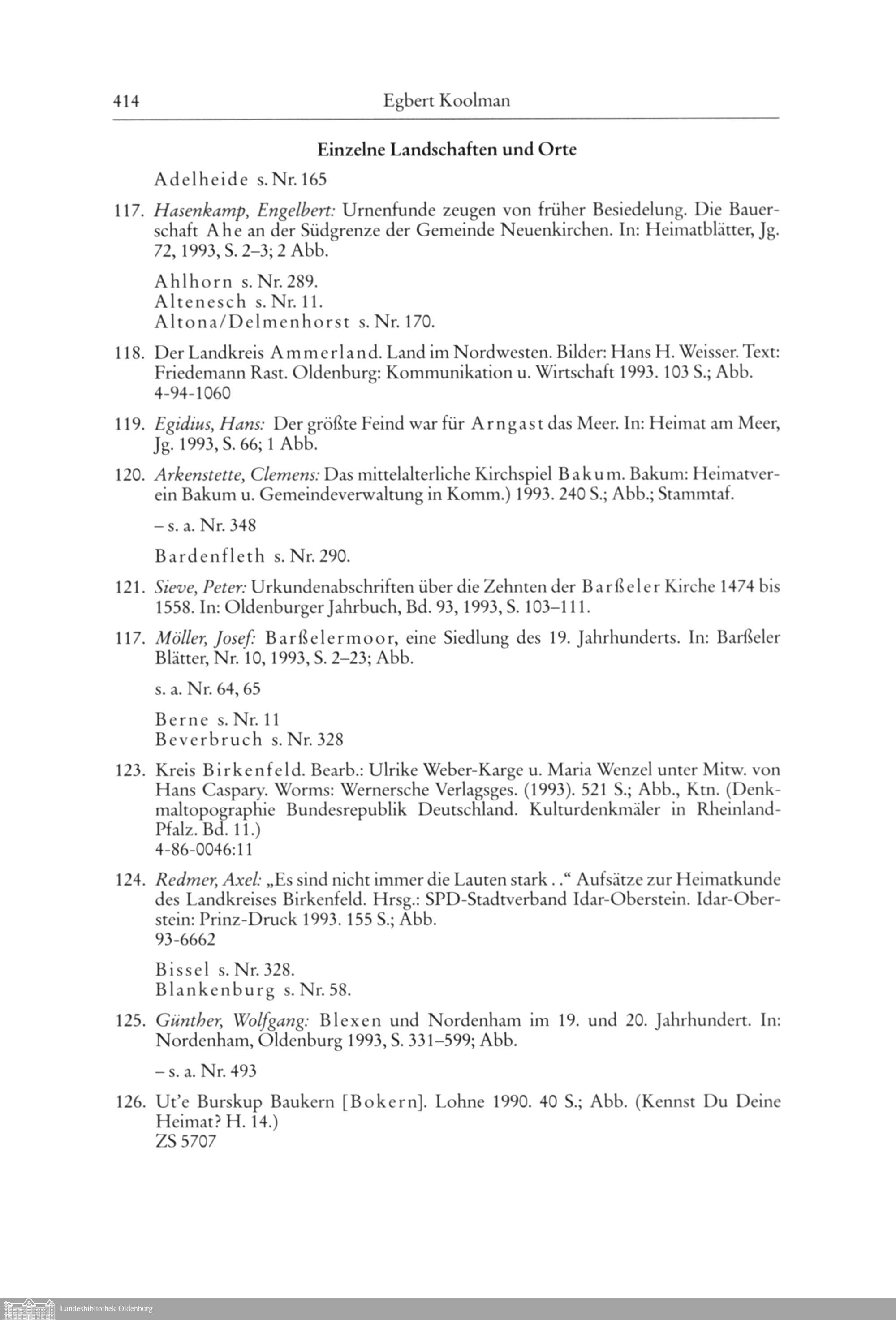 Egbert Koolman und Rainer Lübbe: Oldenburgische Bibliographie 1993 (Mit Nachträgen...