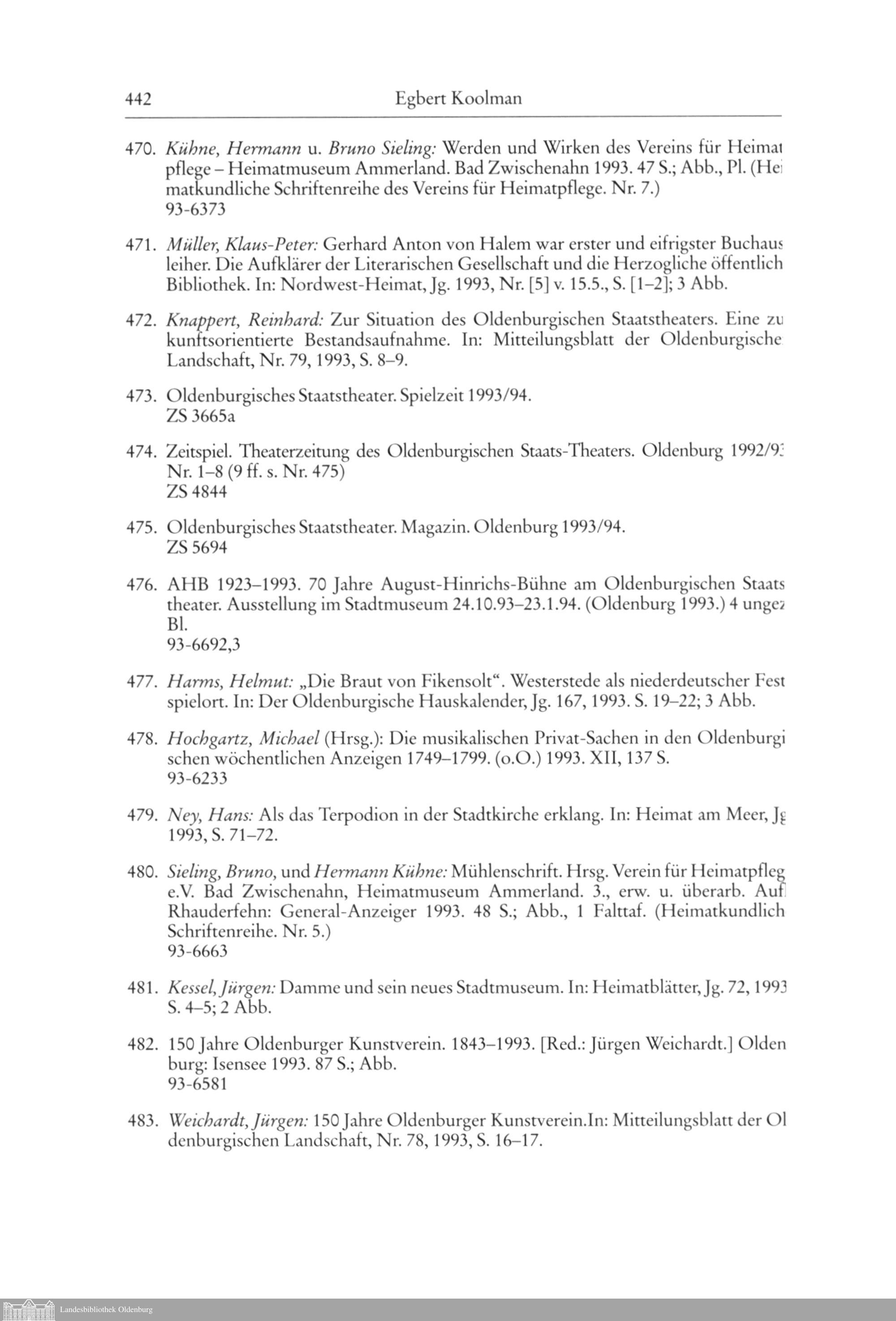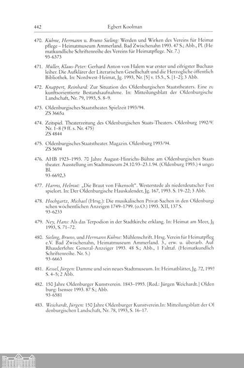 Egbert Koolman und Rainer Lübbe: Oldenburgische Bibliographie 1993 (Mit Nachträgen...