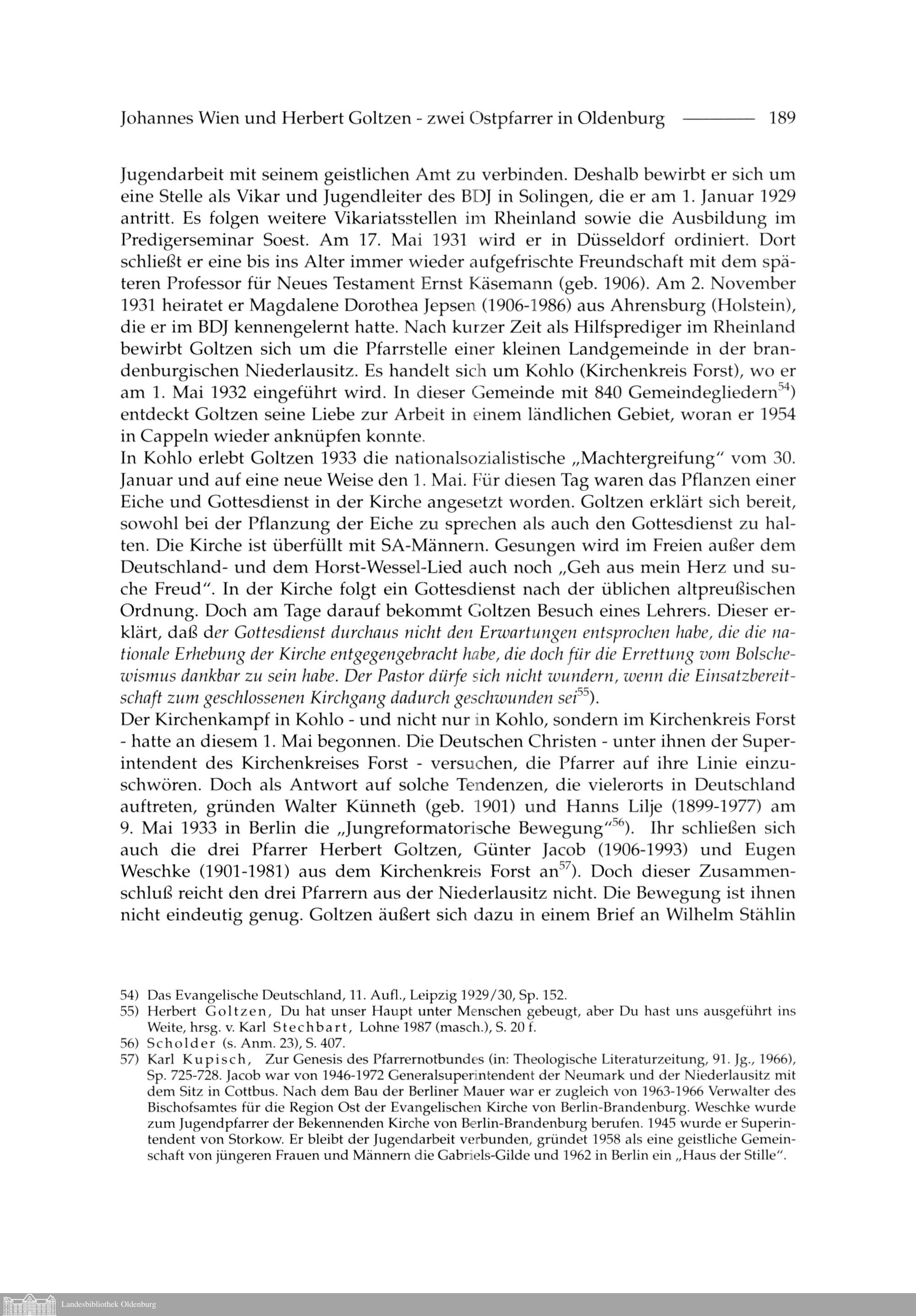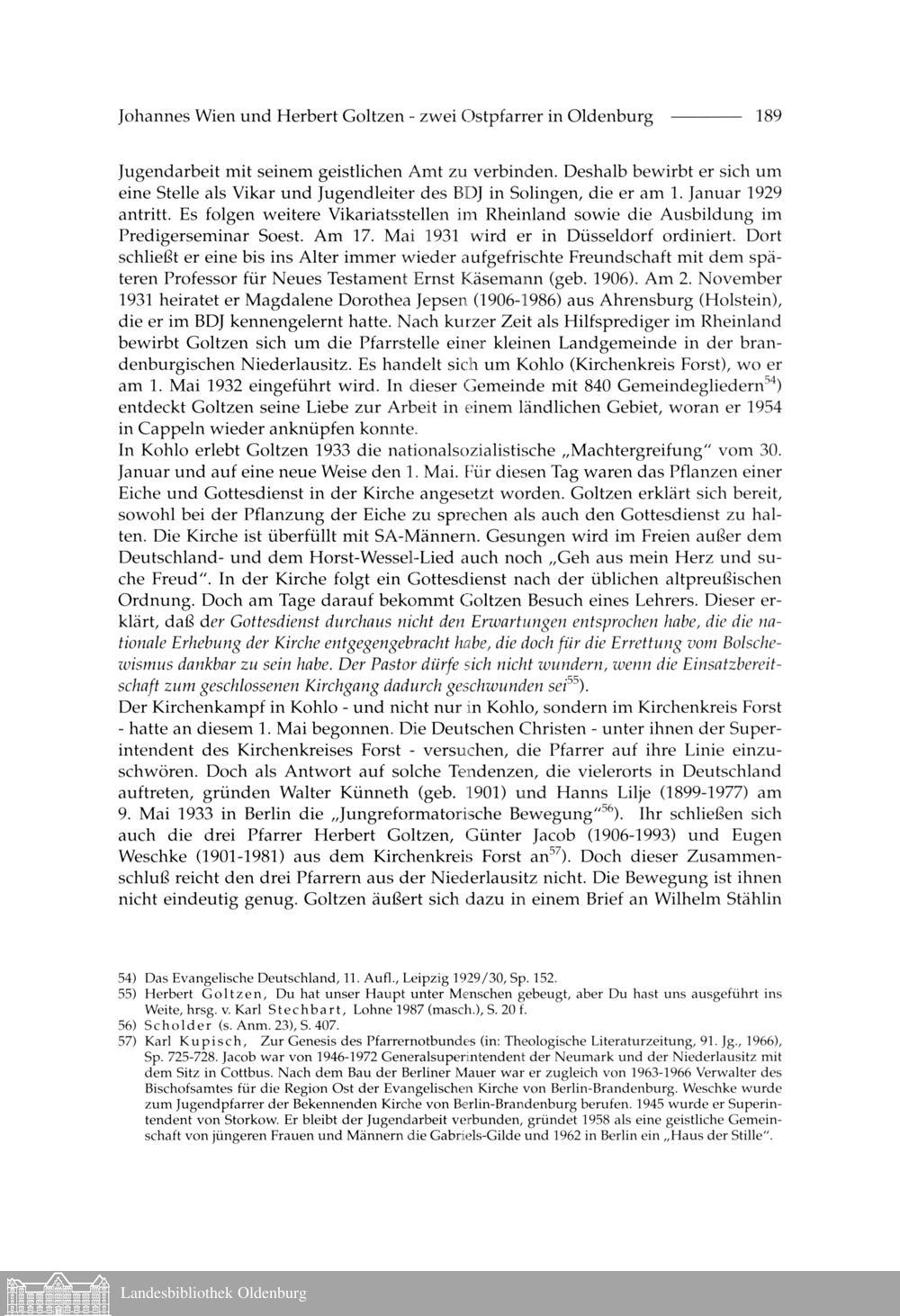 Udo Schulze: Johannes Wien und Herbert Goltzen - zwei Ostpfarrer in Oldenburg