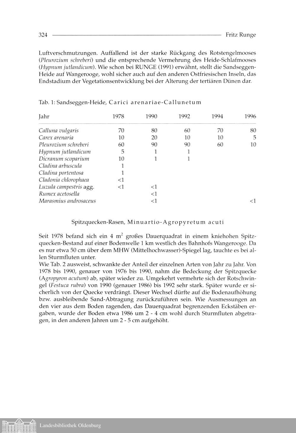 Fritz Runge: Sukzessionsstudien an einigen Pflanzengesellschaften Wangerooges IV
