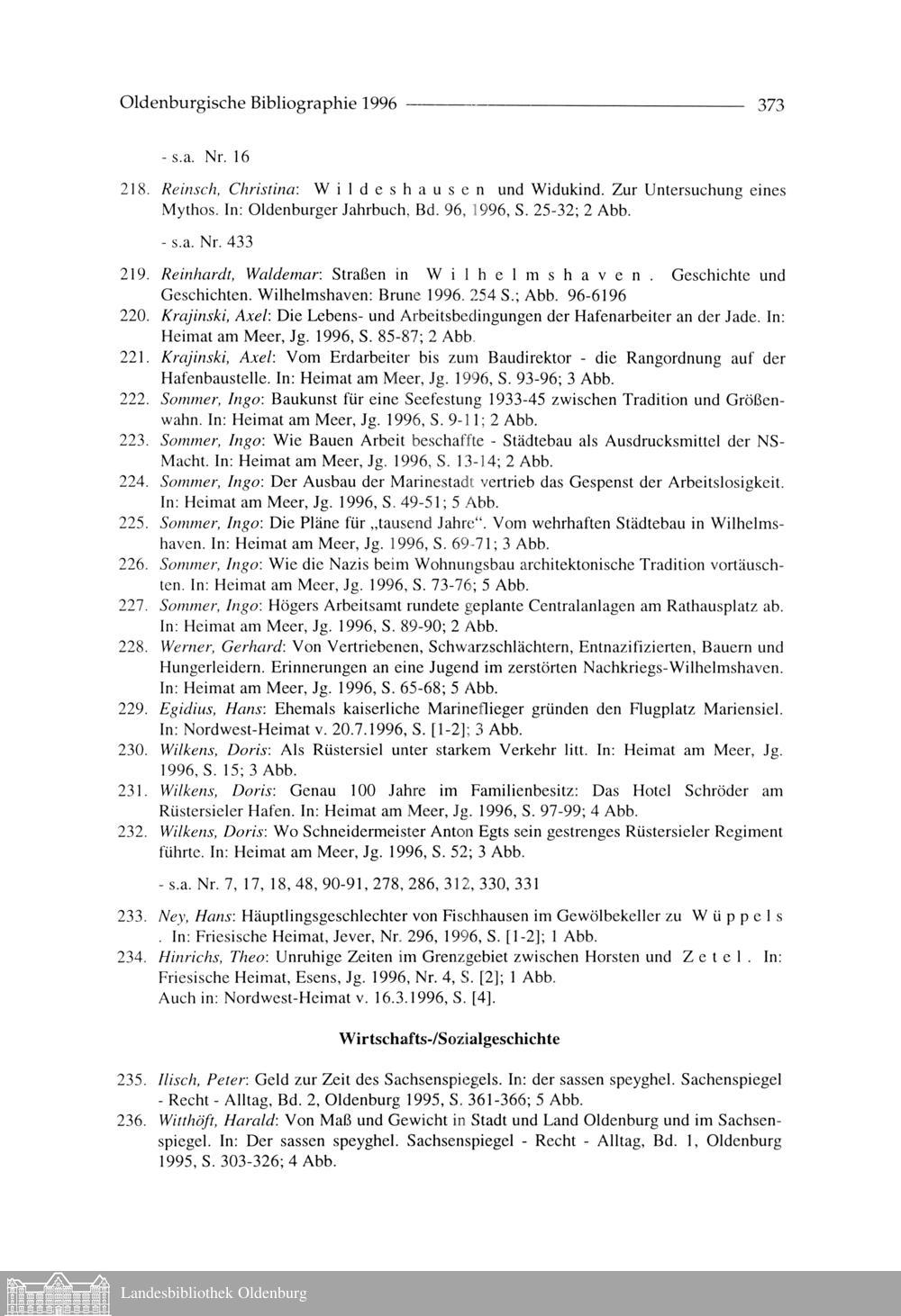 Egbert Koolman: Oldenburgische Bibliographie 1996 (Mit Nachträgen aus den vergangenen...