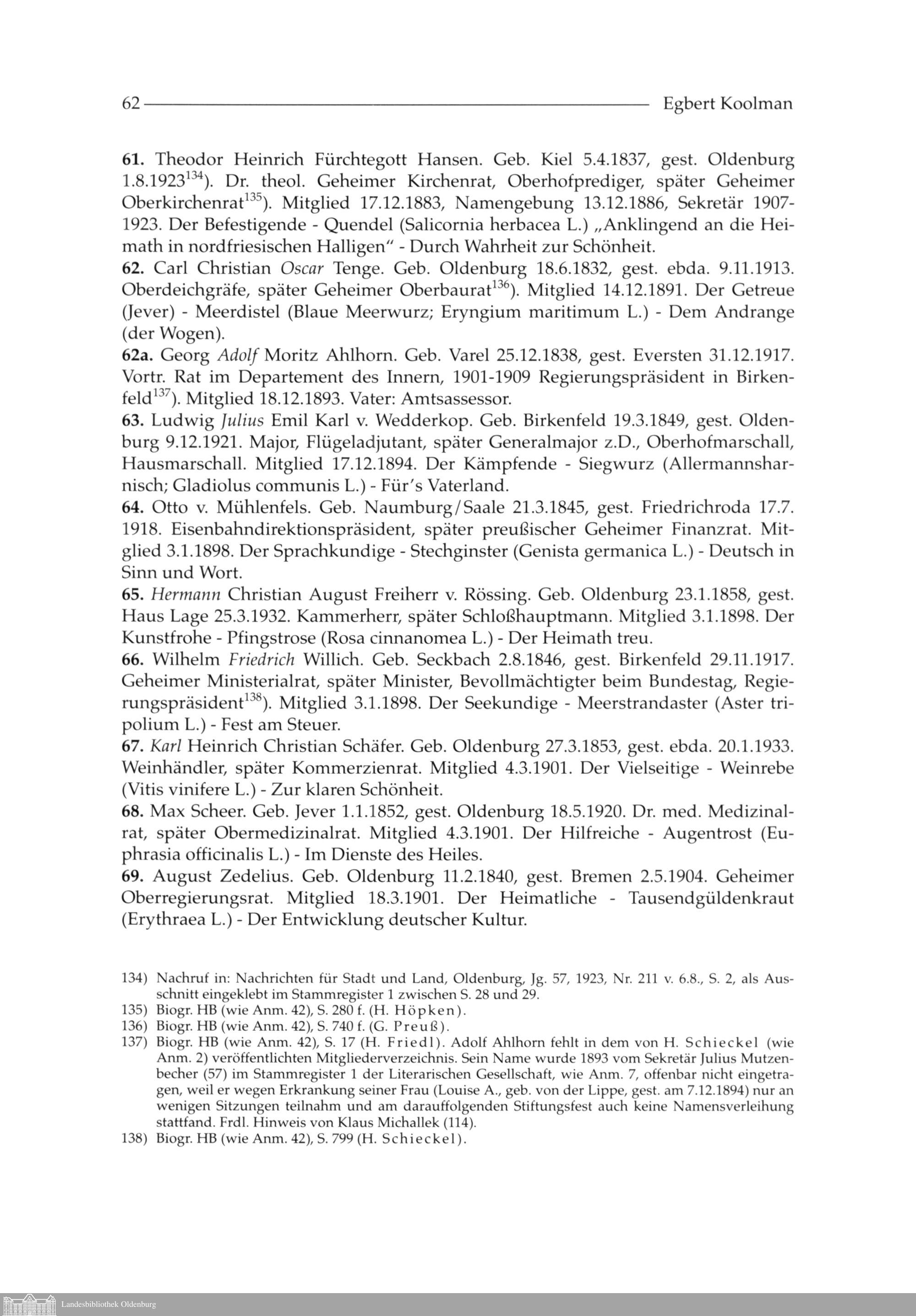 Egbert Koolman: Die Namen, Symbole und Devisen der Oldenburgischen Literarischen...