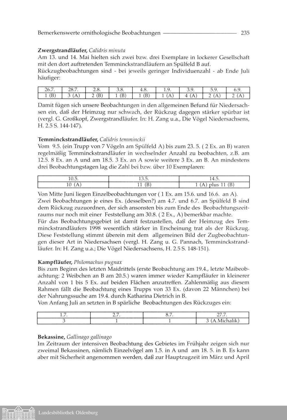 Werner Menke und Graeme Pegram: Bemerkenswerte ornithologische Beobachtungen an Spülfeldern...