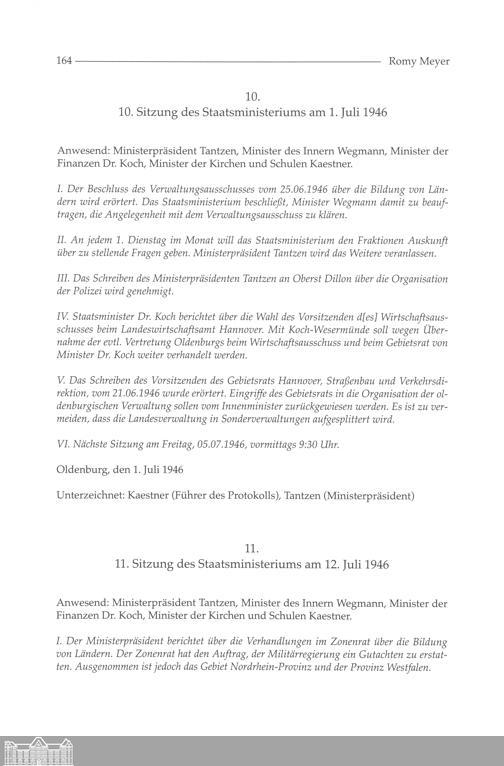 Romy Meyer: Oldenburg auf dem Weg nach Niedersahcsen - die Kabinettsprotokolle des...