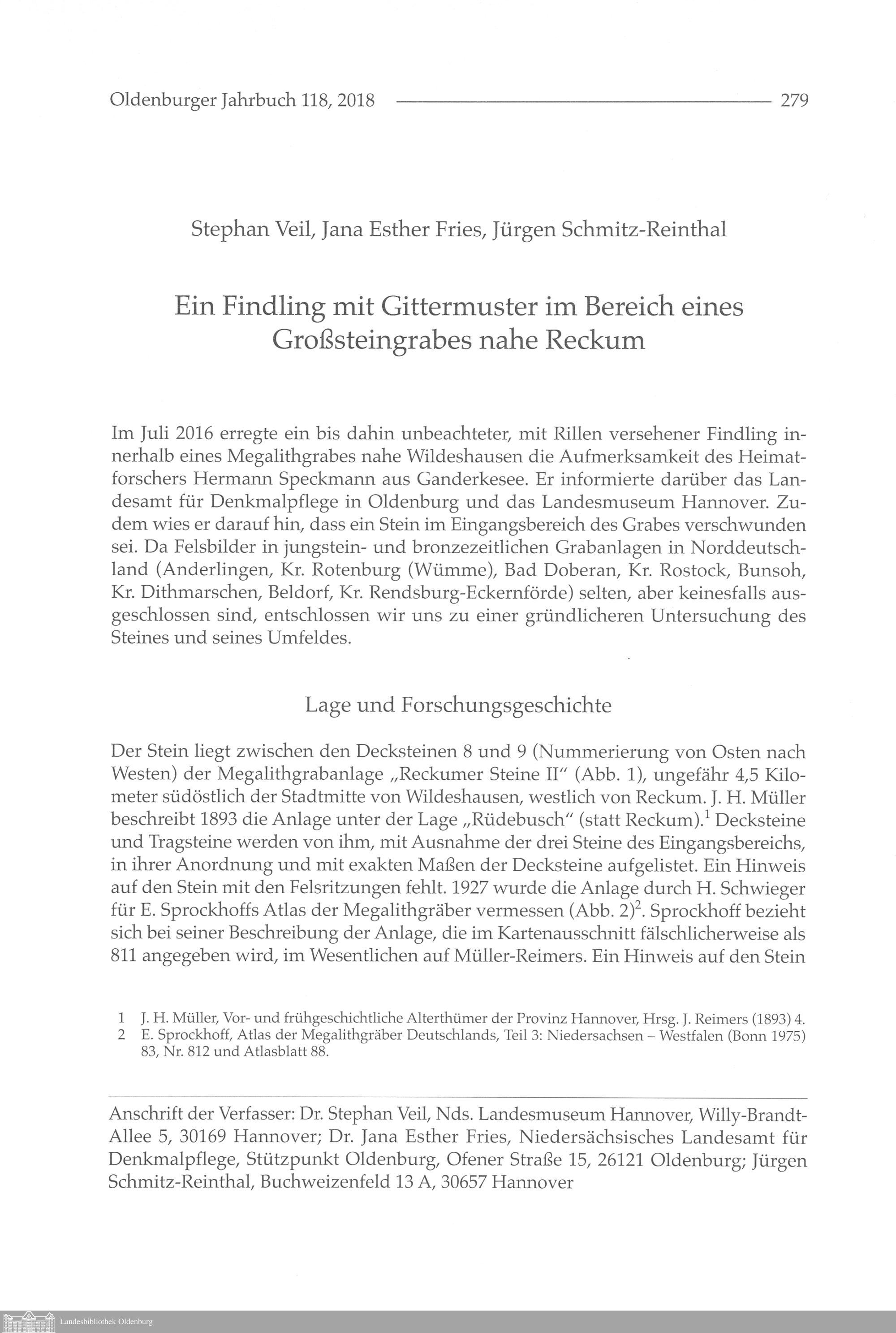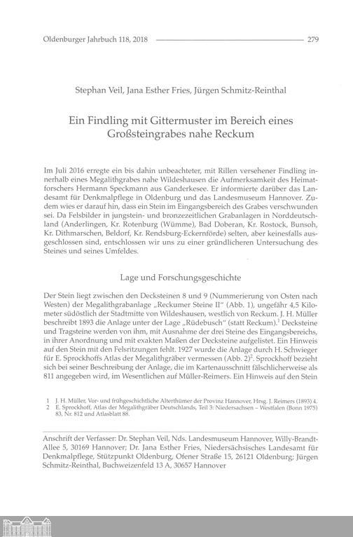 Stephan Veil, Jana Esther Fries, Jürgen Schmitz-Reinthal: Ein Findling mit Gittermuster...