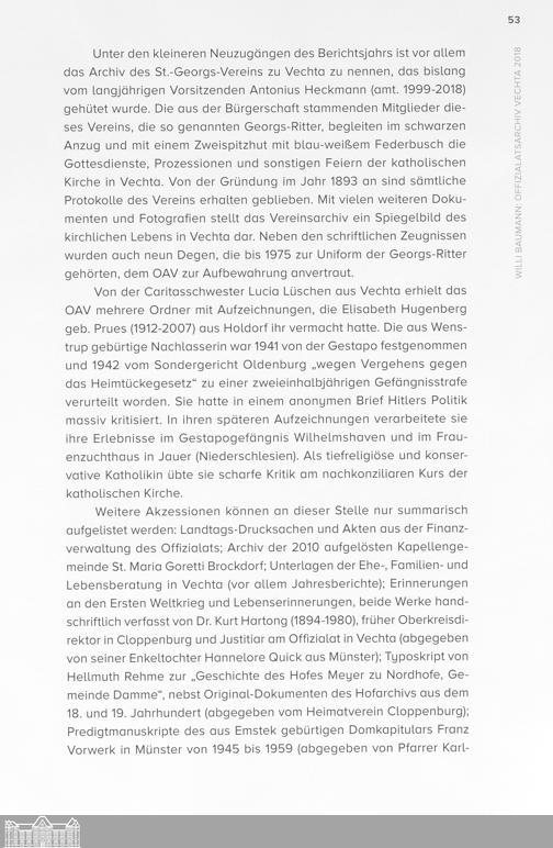 Willi Baumann: Das Offizialatsarchiv Vechta 2018