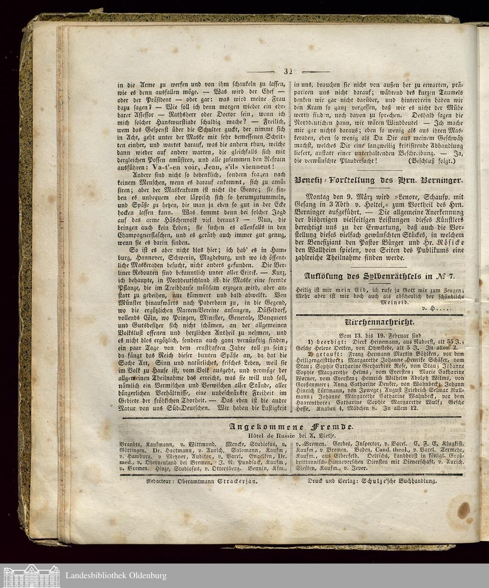 Mittheilungen aus Oldenburg über das Theater und andere Gegenstände der Unterhal...