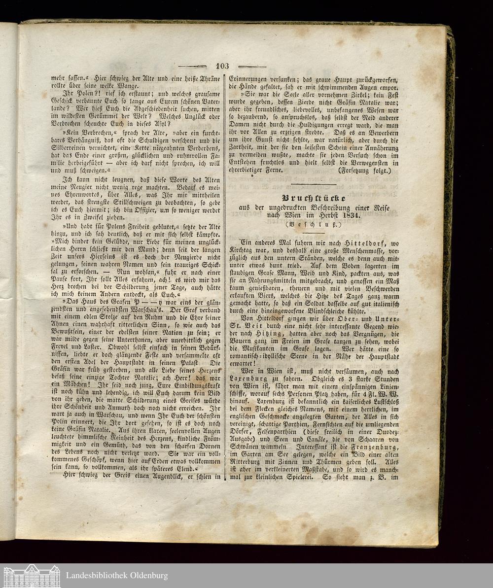 Mittheilungen aus Oldenburg über das Theater und andere Gegenstände der Unterhal...
