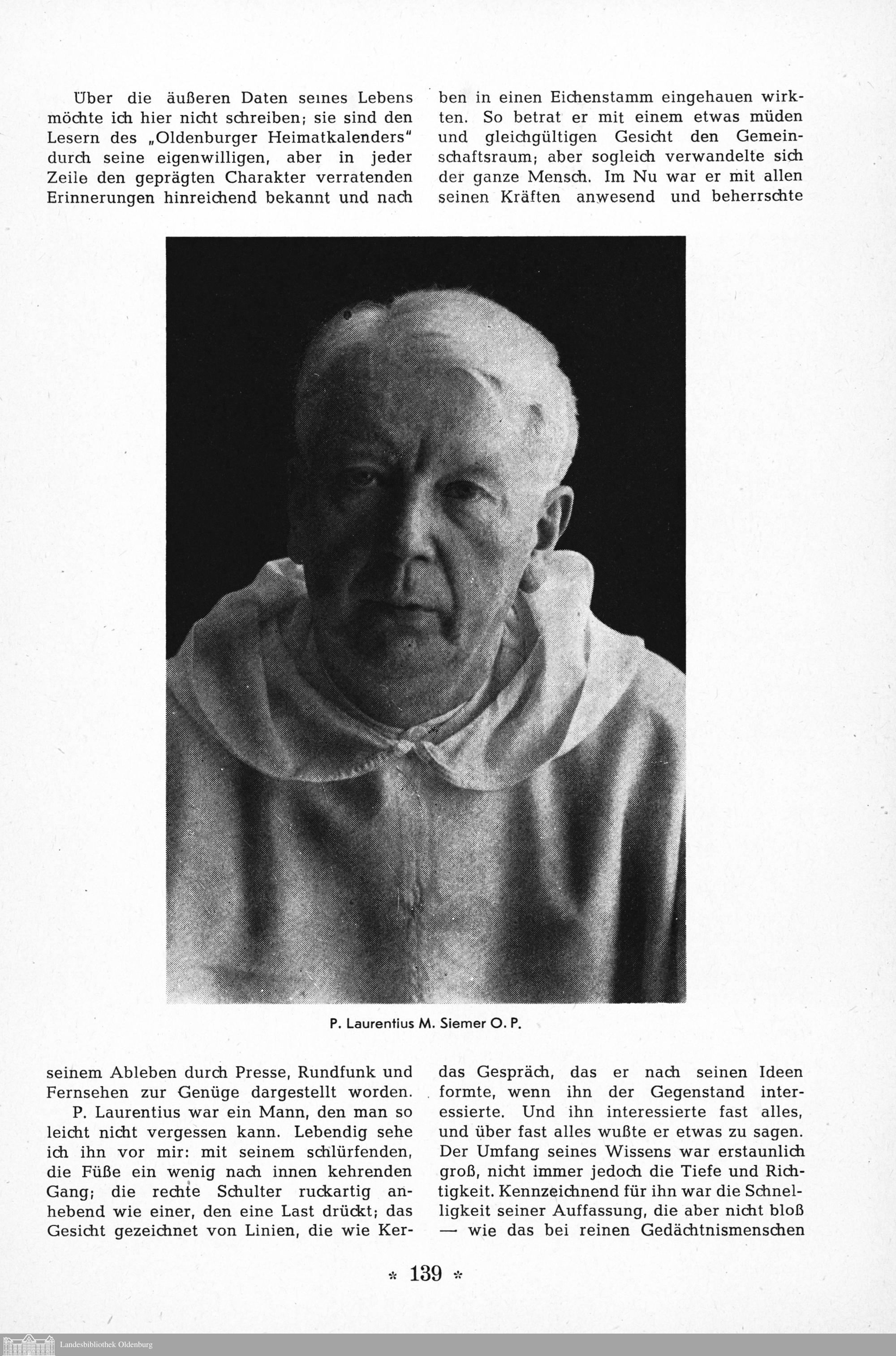 [Alexander Siemer]: P. Laurentius M. Siemer O. P.. 21. Oktober 1956 [mit Abb.]