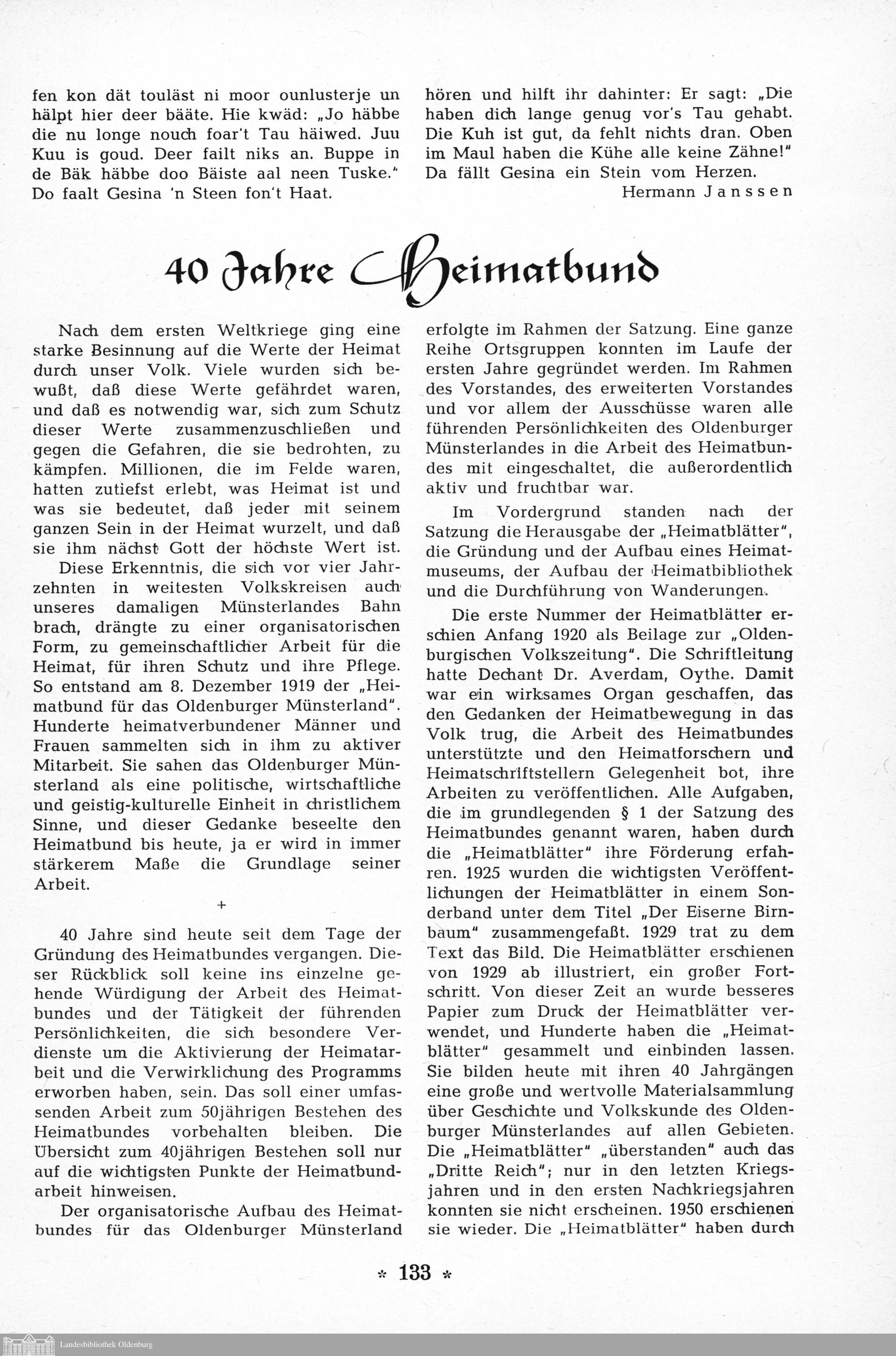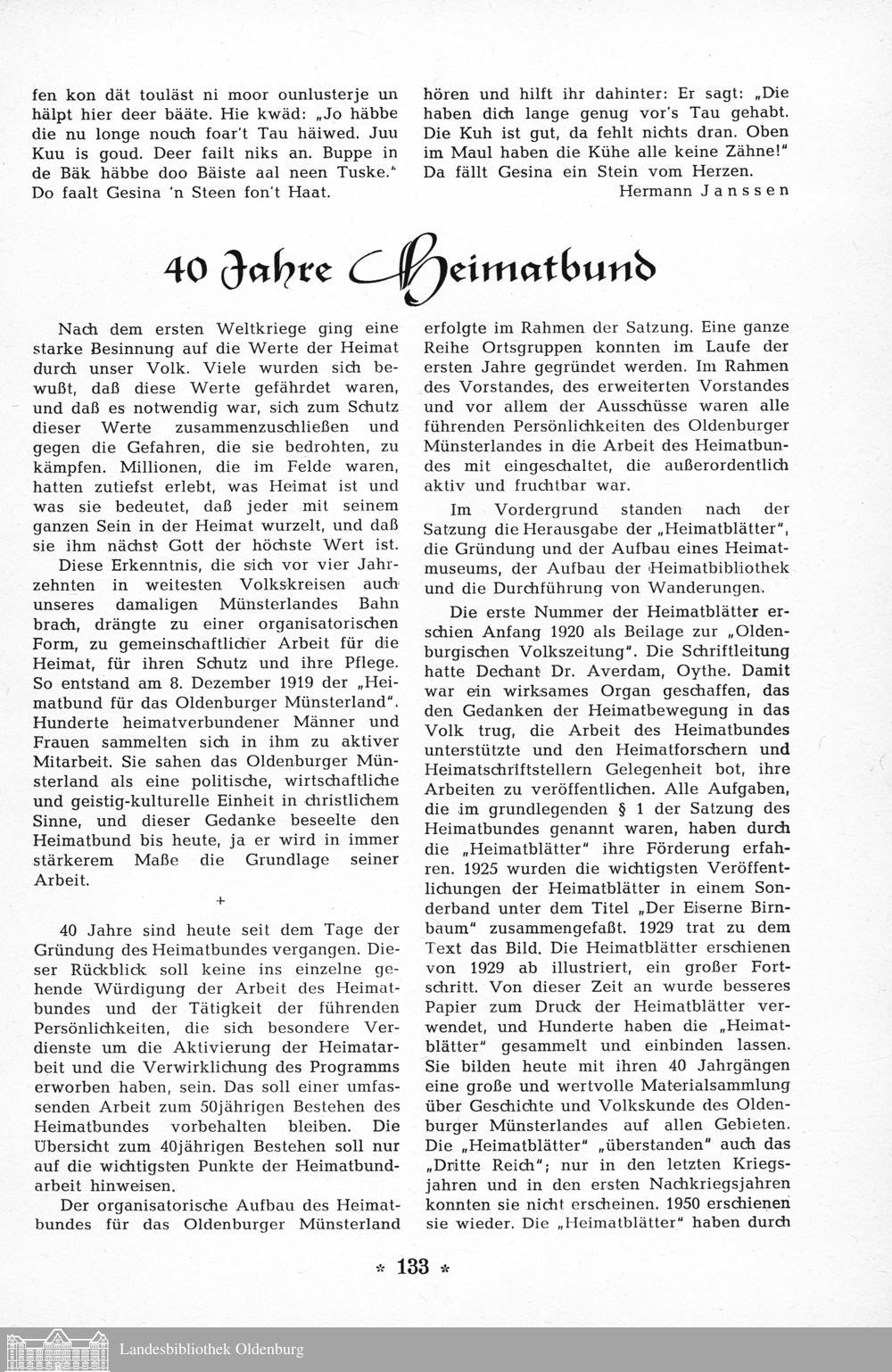 [Hermann Thole]: 40 jahre Heimatbund