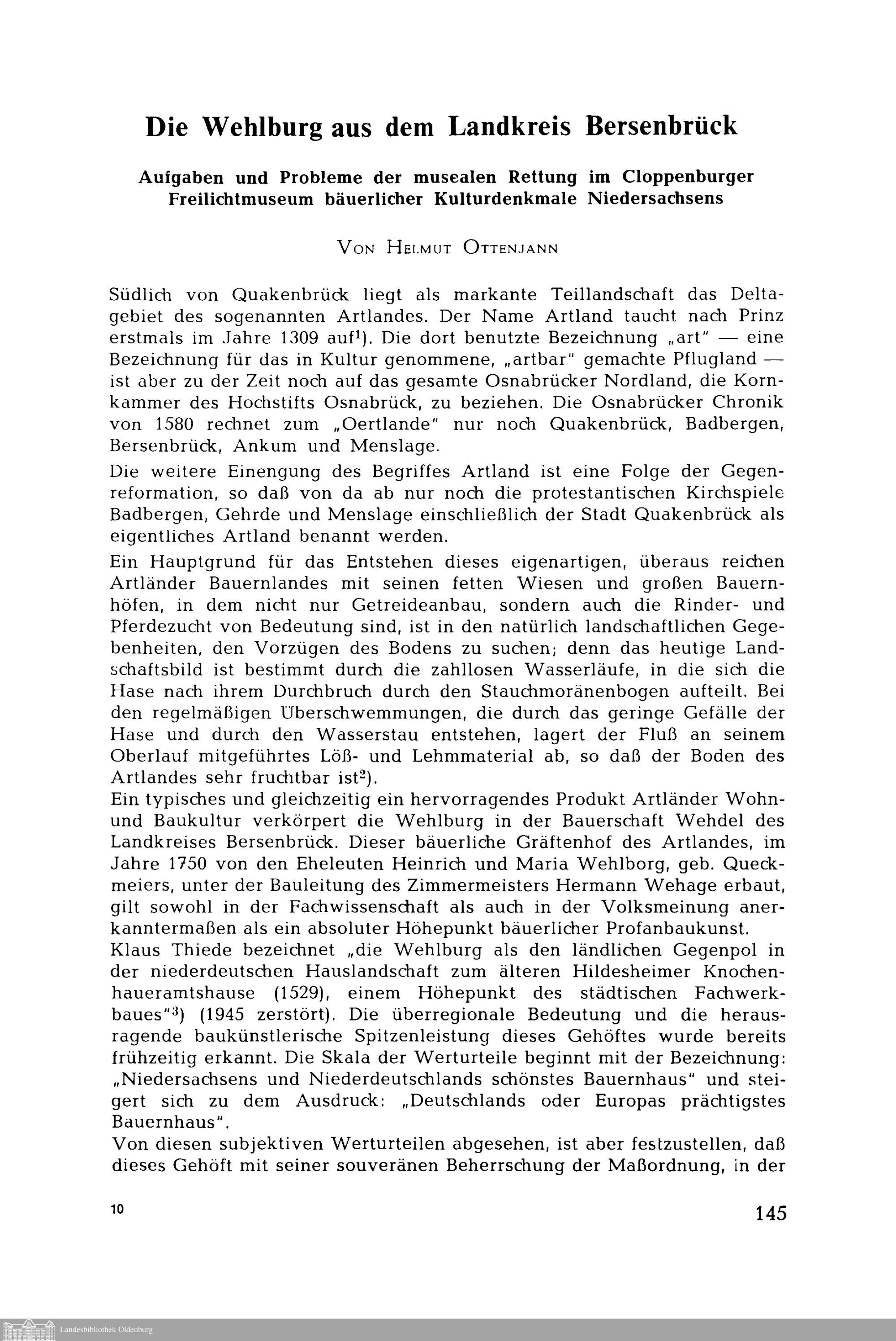 Helmut Ottenjann: Die Wehlburg aus dem Landkreis Bersenbrück. Aufgaben und Probleme...