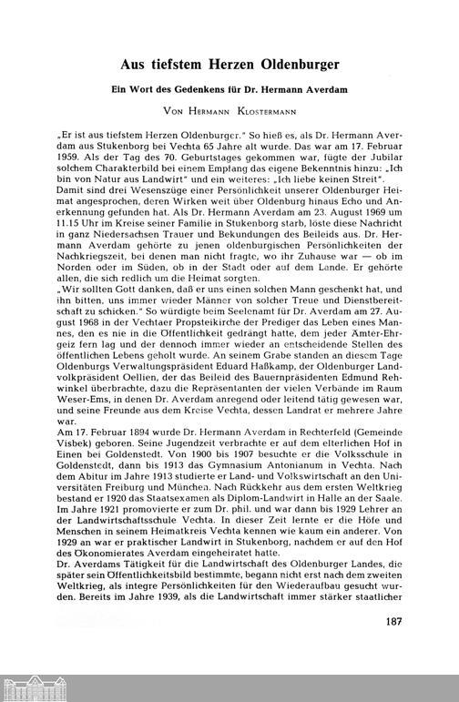 Hermann Klostermann: Aus tiefstem Herzen Oldenburger. Ein Wort des Gedenkens für...