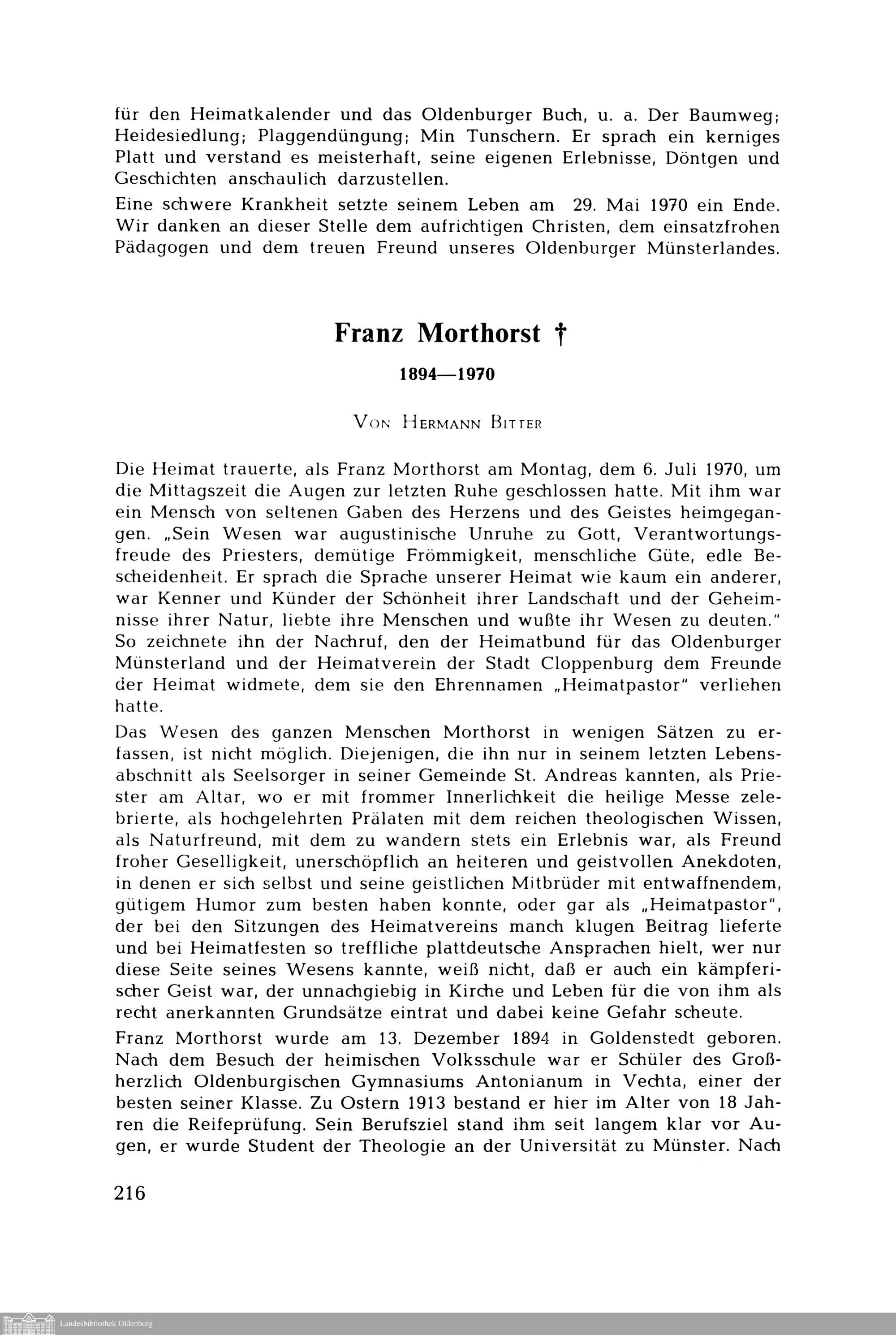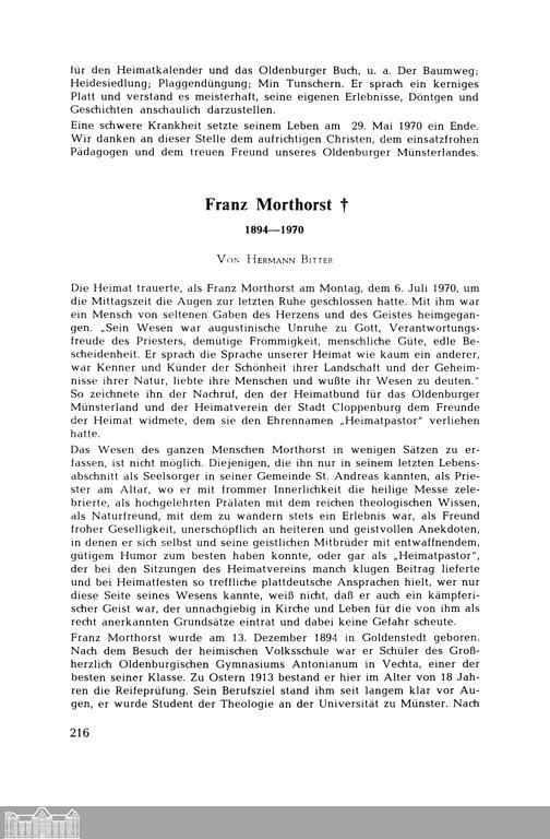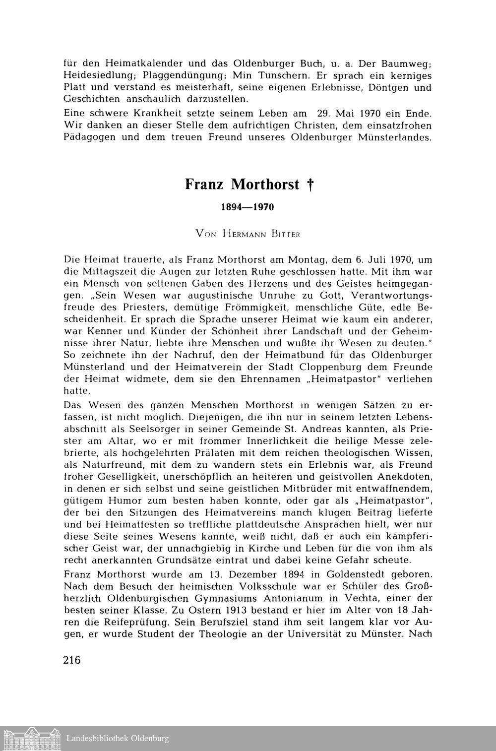 Hermann Bitter: Franz Morthorst. 1894-1970