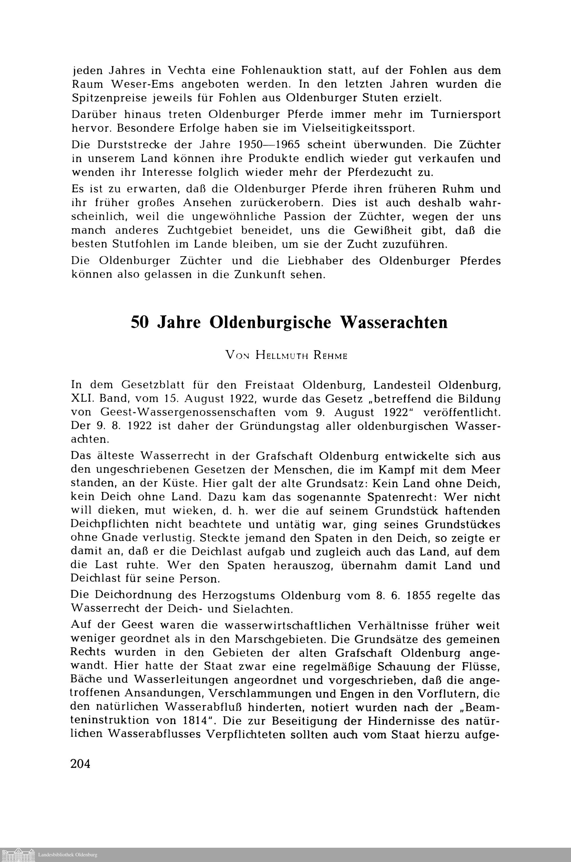 Hellmuth Rehme: 50 Jahre Oldenburgische Wasserachten
