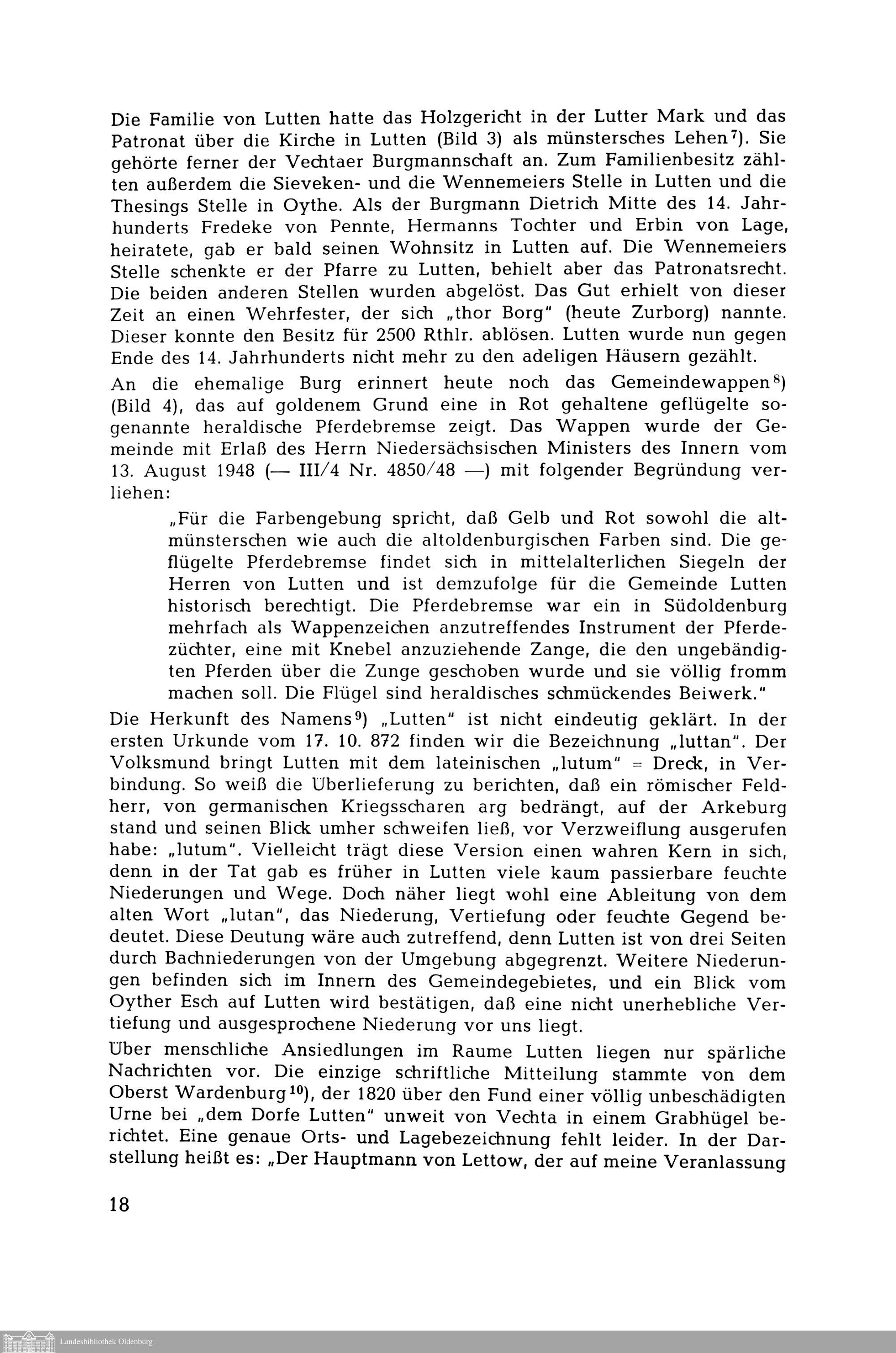 Engelbert Hasenkamp: 1100 Jahre Gemeinde Lutten: 872-1972
