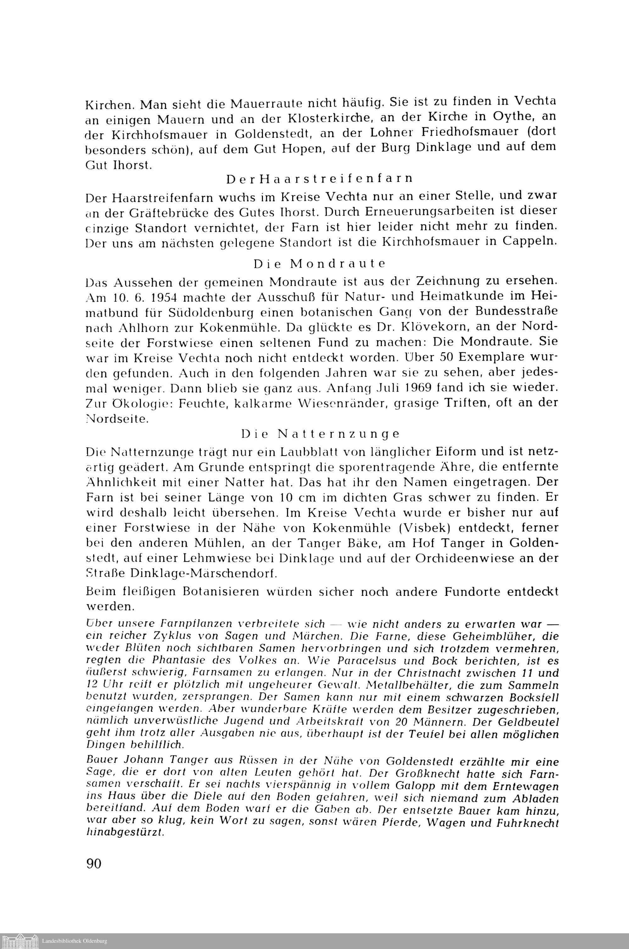 Franz Runholl: Farne im Kreise Vechta. Arten und Verbreitung