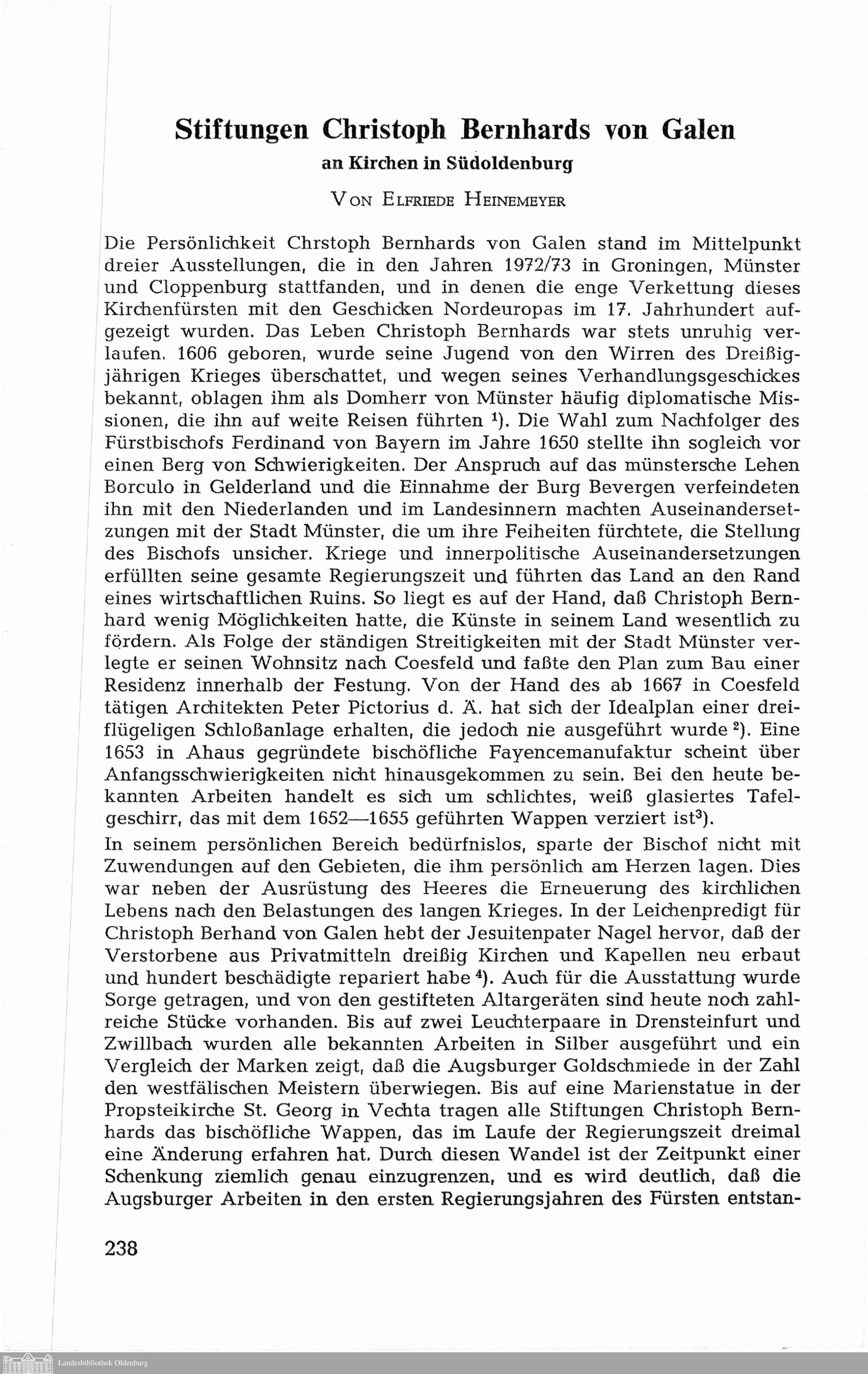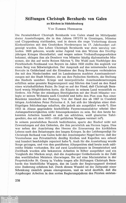 Elfriede Heinemeyer: Stiftung Christoph Bernhards von Galen an Kirchen in Südold...