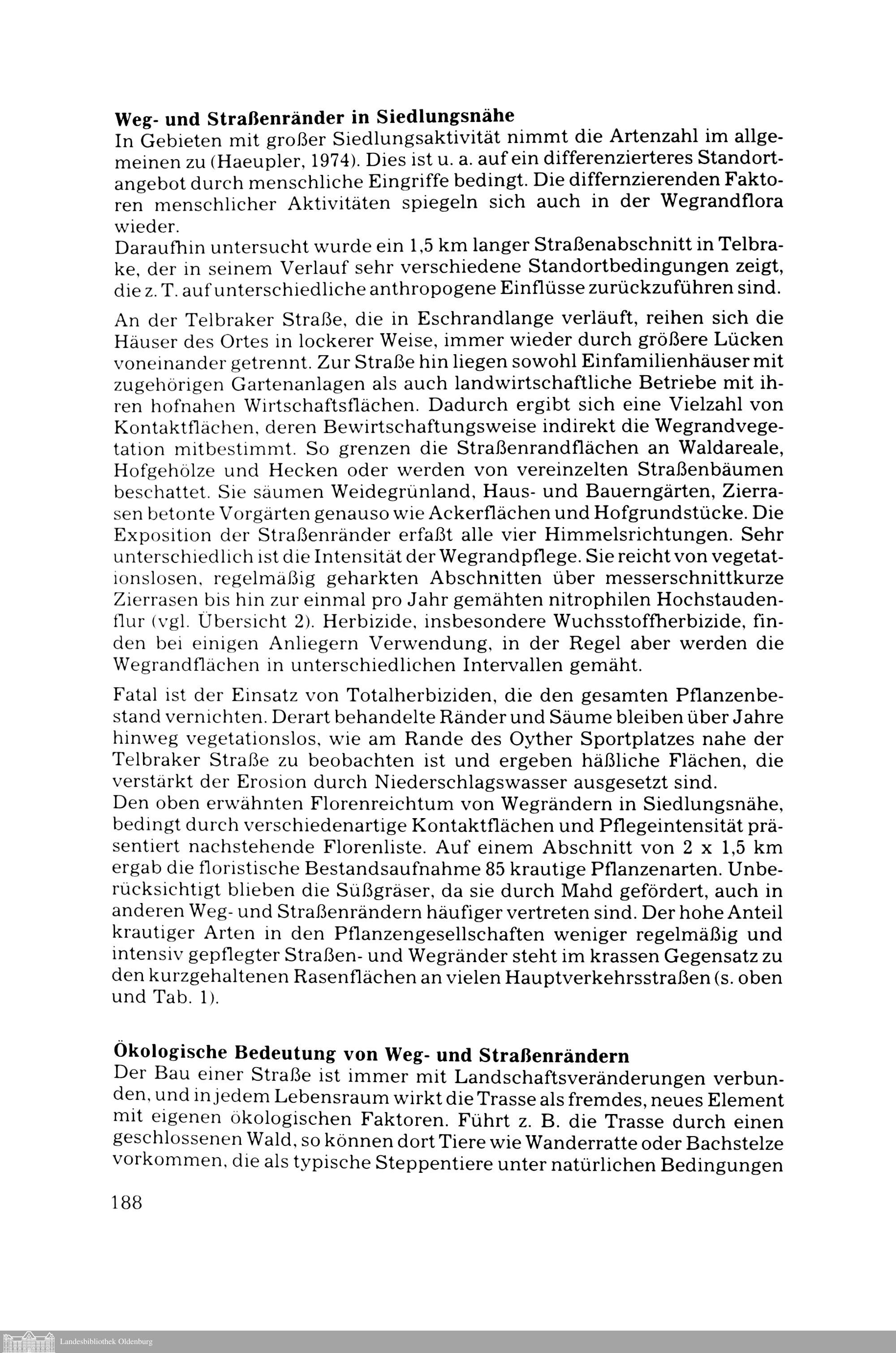 Heinz Höppner: Die ökologische Bedeutung der Flora von Weg- und Grabenrändern sowie...