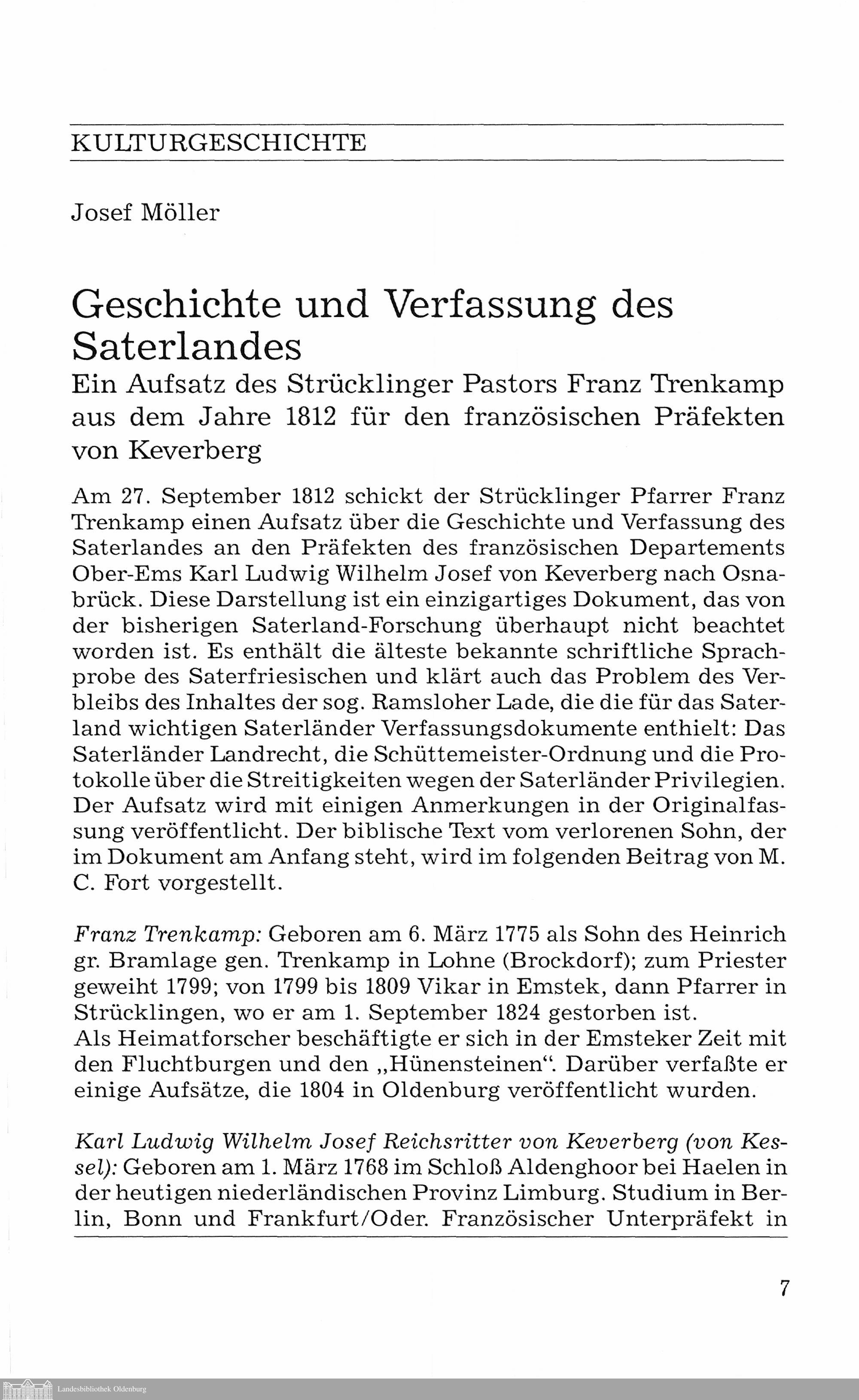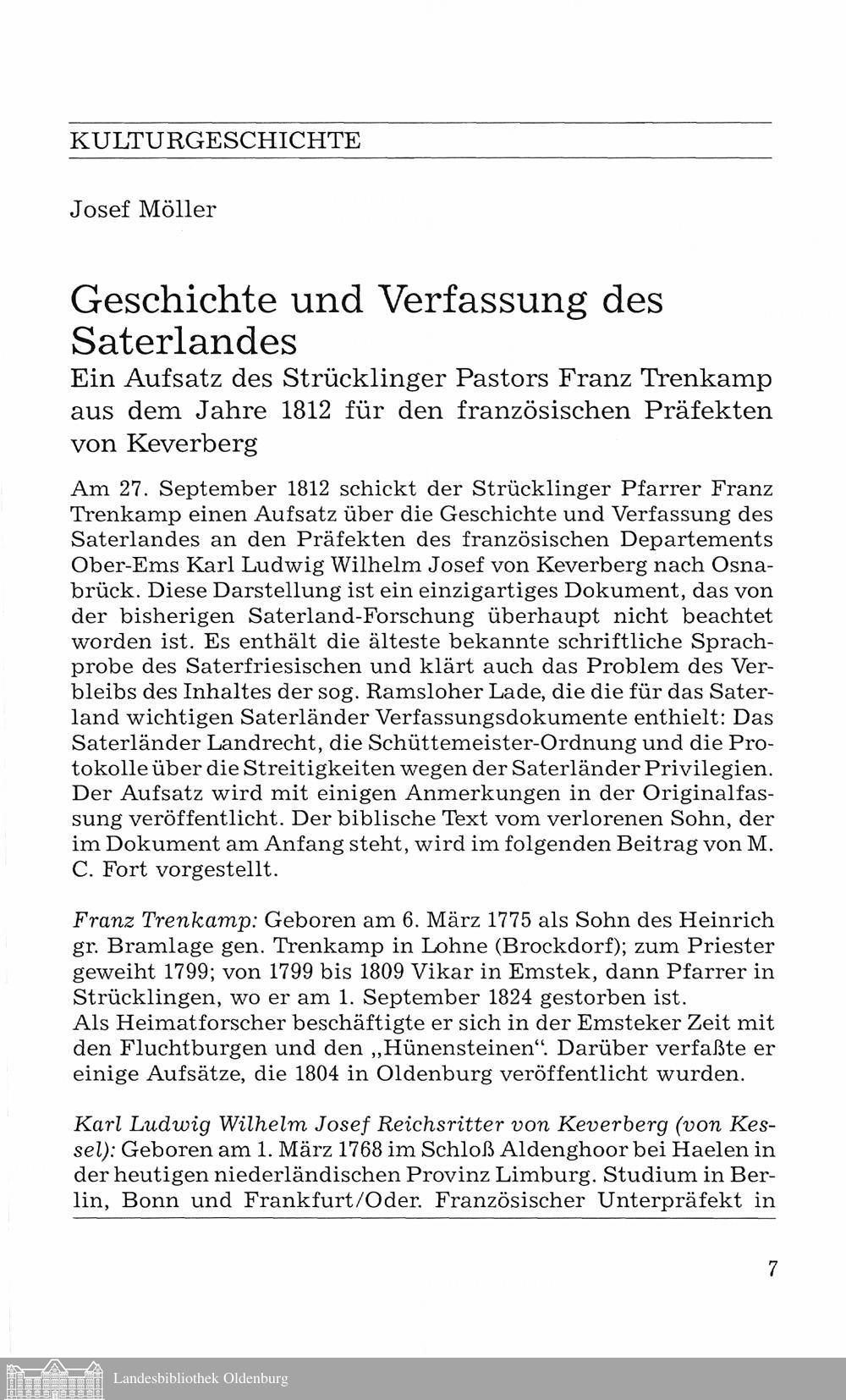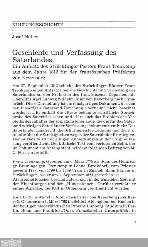 Josef Möller: Geschichte und Verfassung des Saterlandes. Ein Aufsatz des Strücklinger...