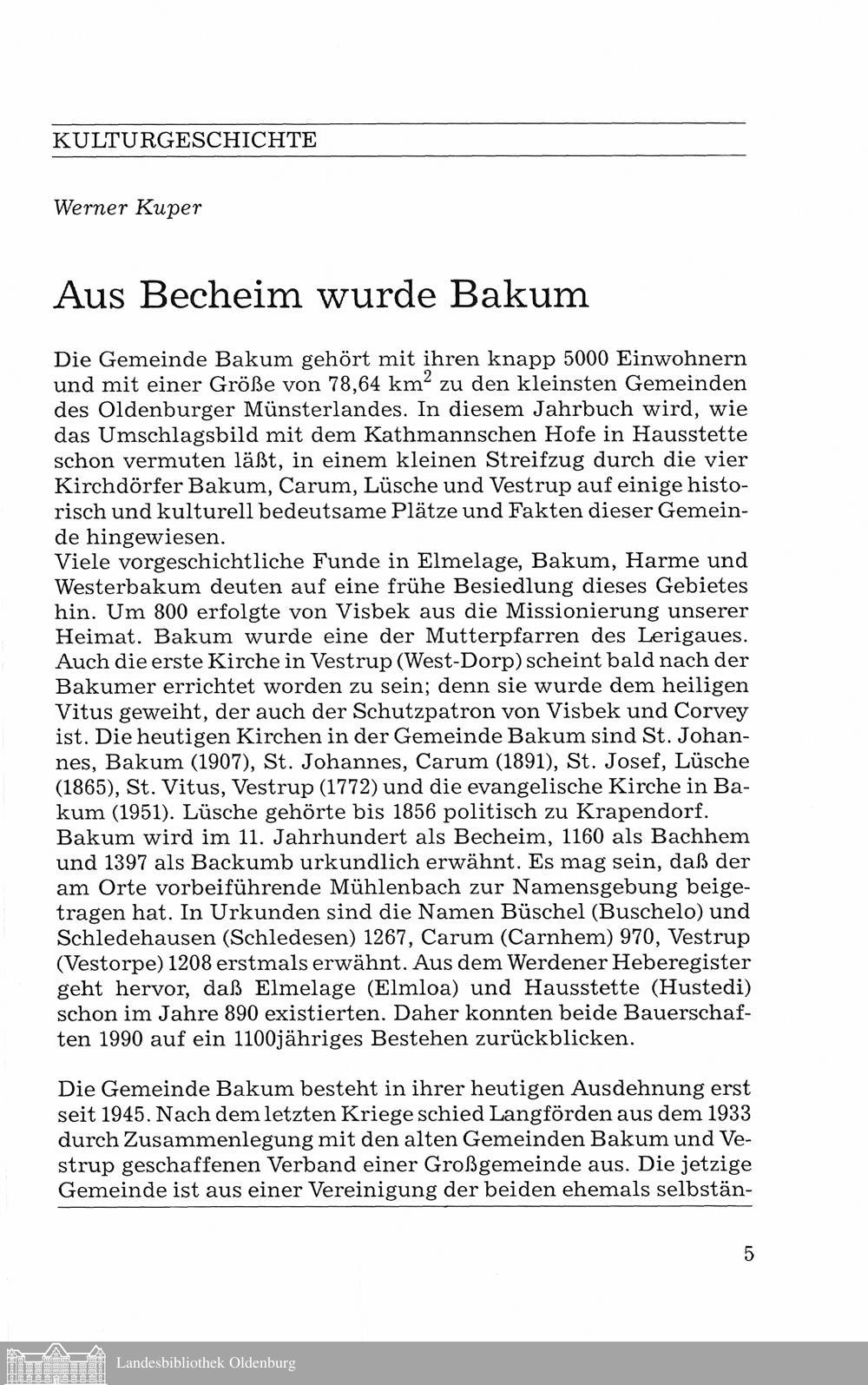 Werner Kuper: Aus Bechheim wurde Bakum