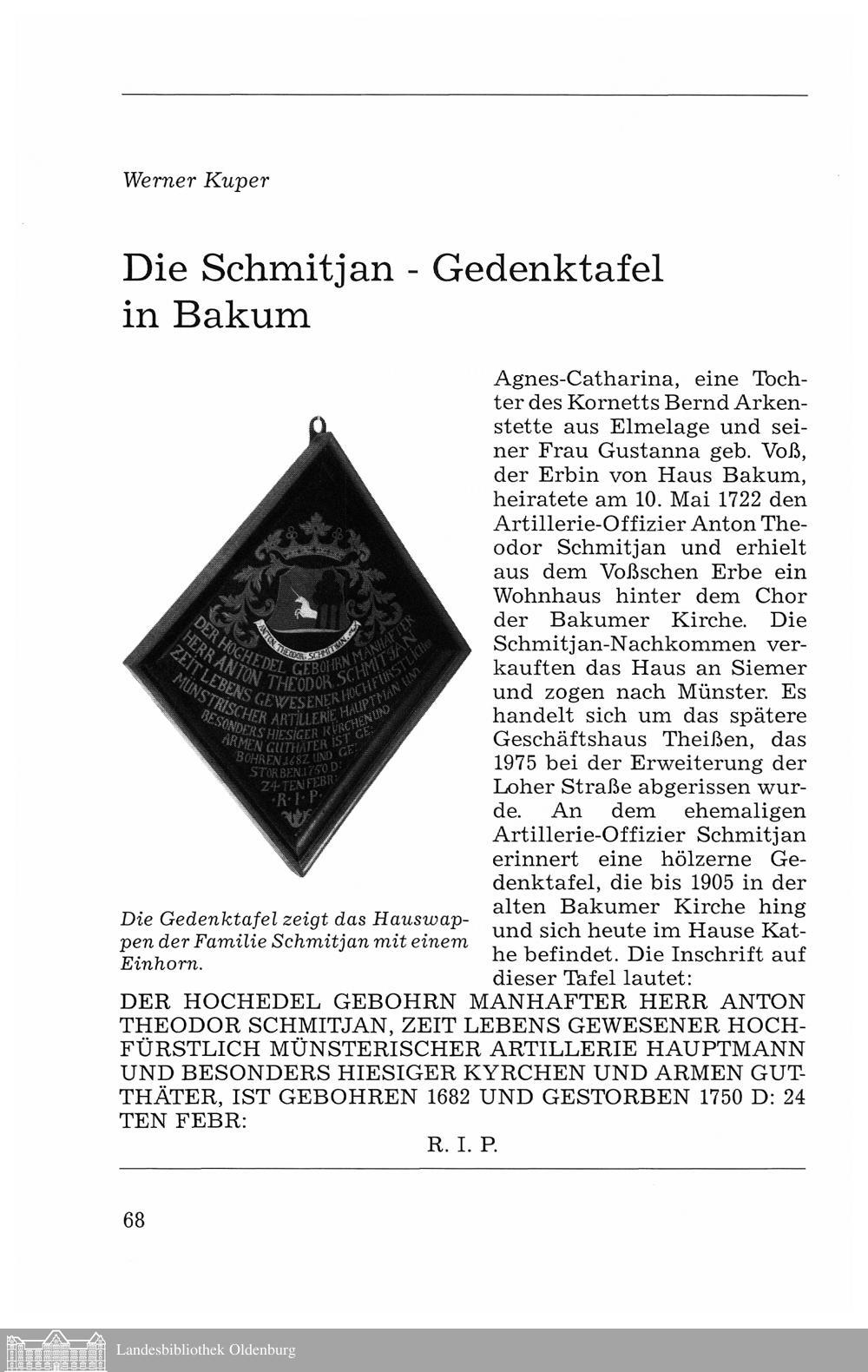 Werner Kuper: Die Schmitjan - Gedenktafel in Bakum