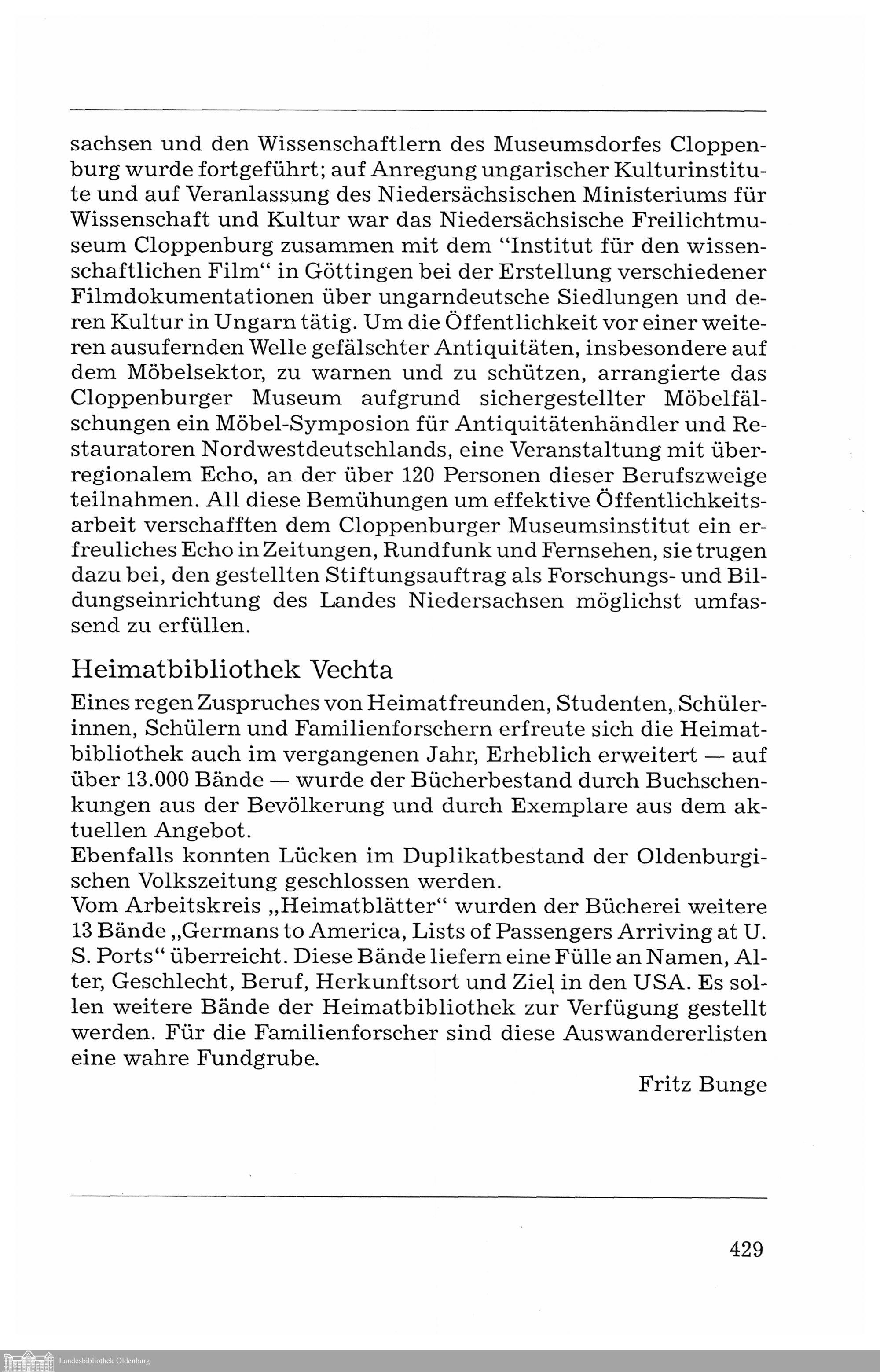 Fritz Bunge: Heimatbibliothek Vechta