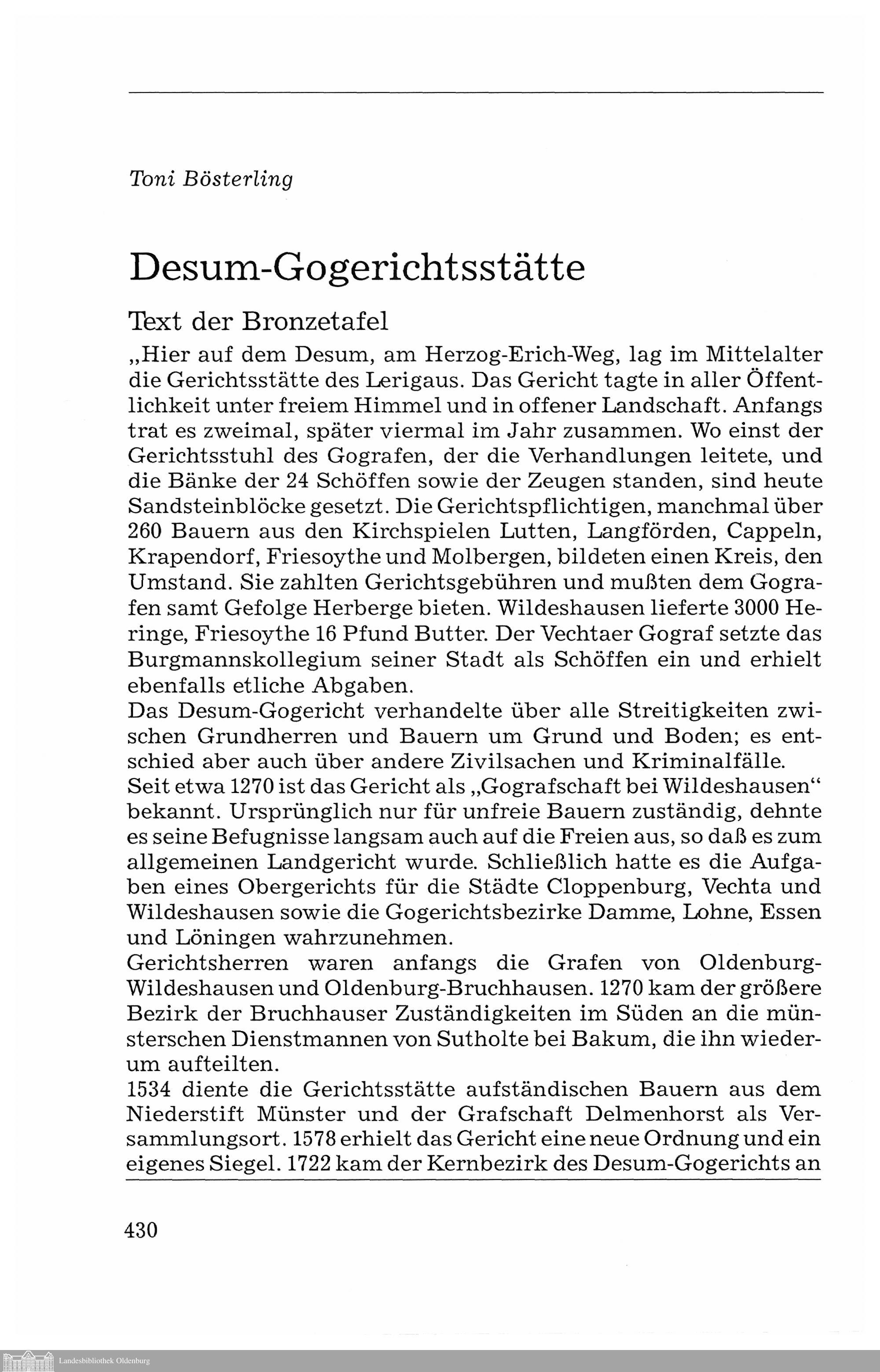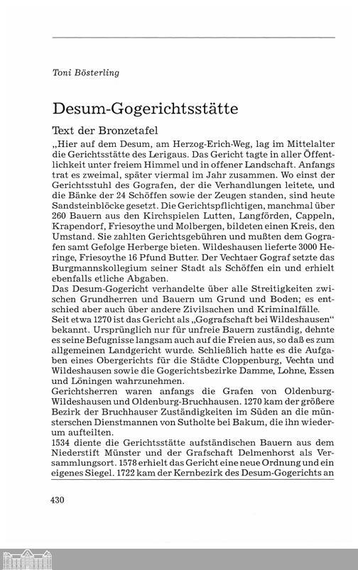 Toni Bösterling: Desum-Gogerichtsstätte - Text der Bronzetafel