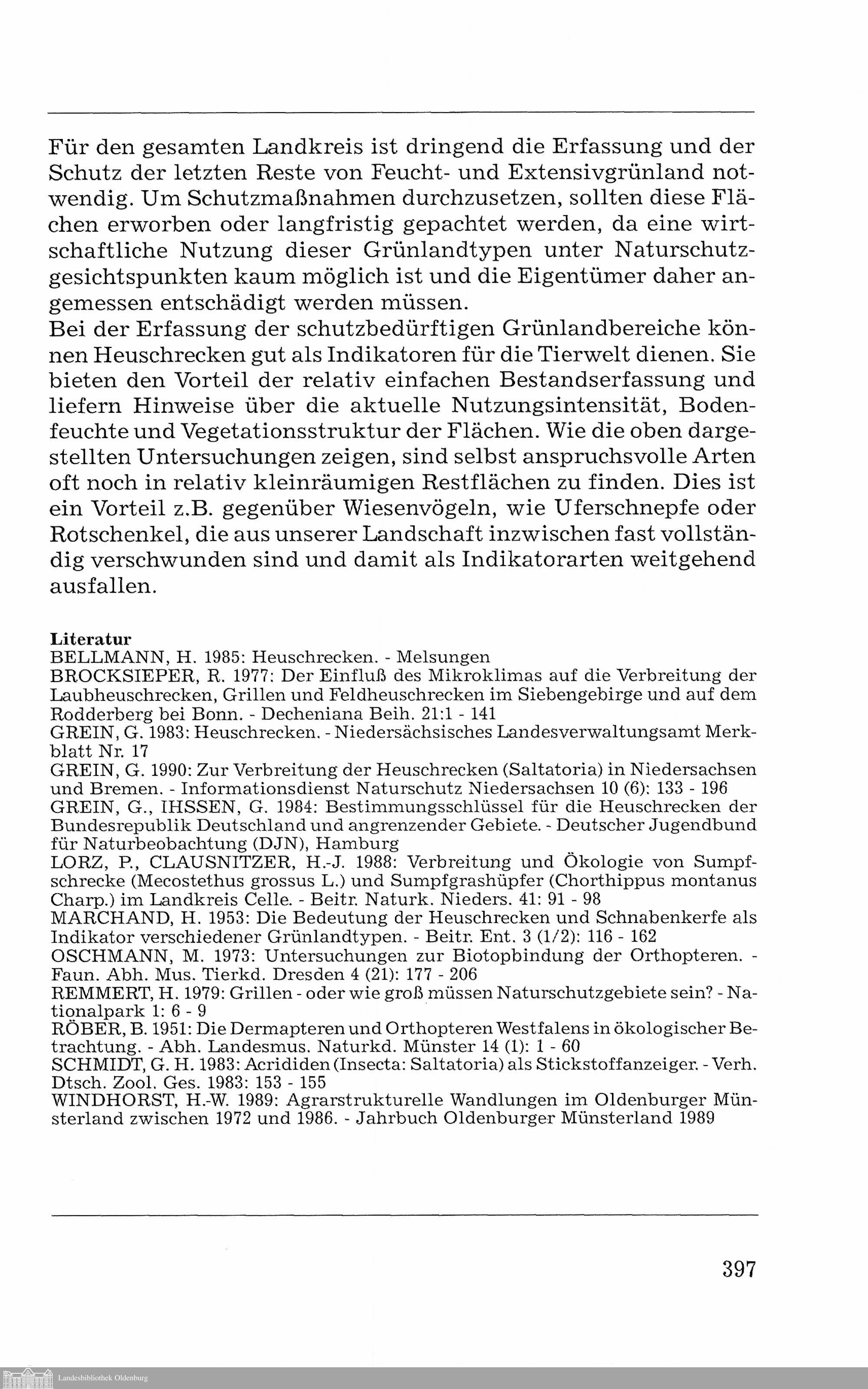 Heinrich Hartong: Grünlandbesiedelnde Heuschrecken im Landkreis Vechta