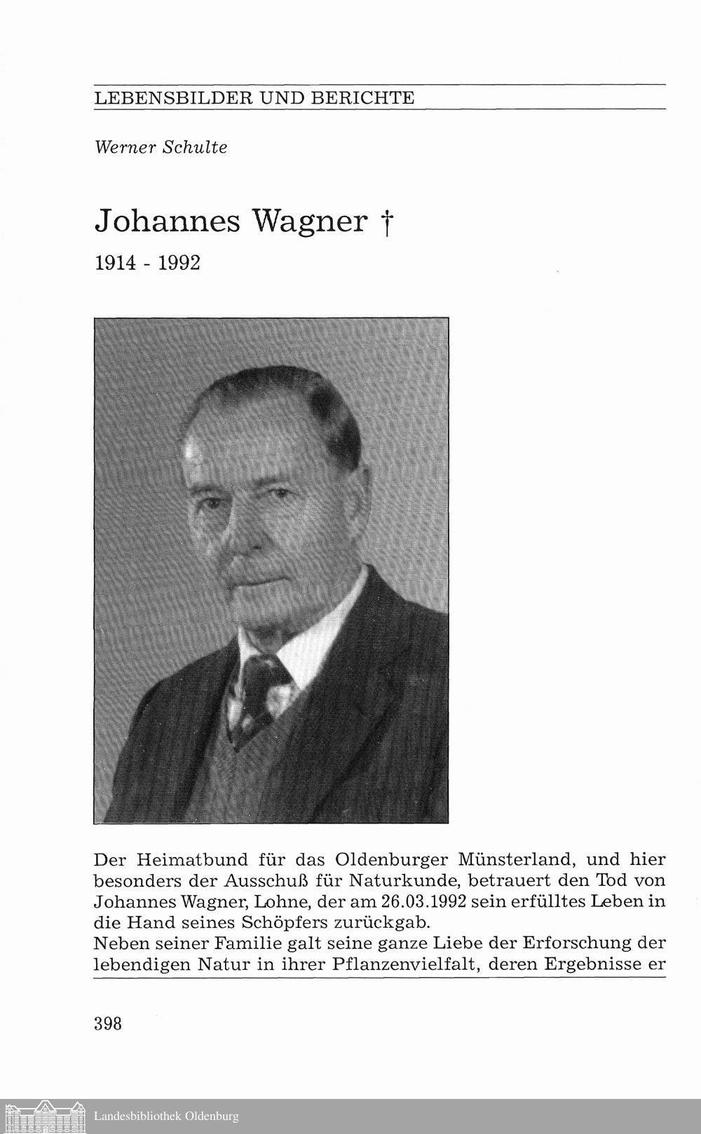 Werner Schulte: Johannes Wagner †. 1914 - 1992 [mit Abb.]
