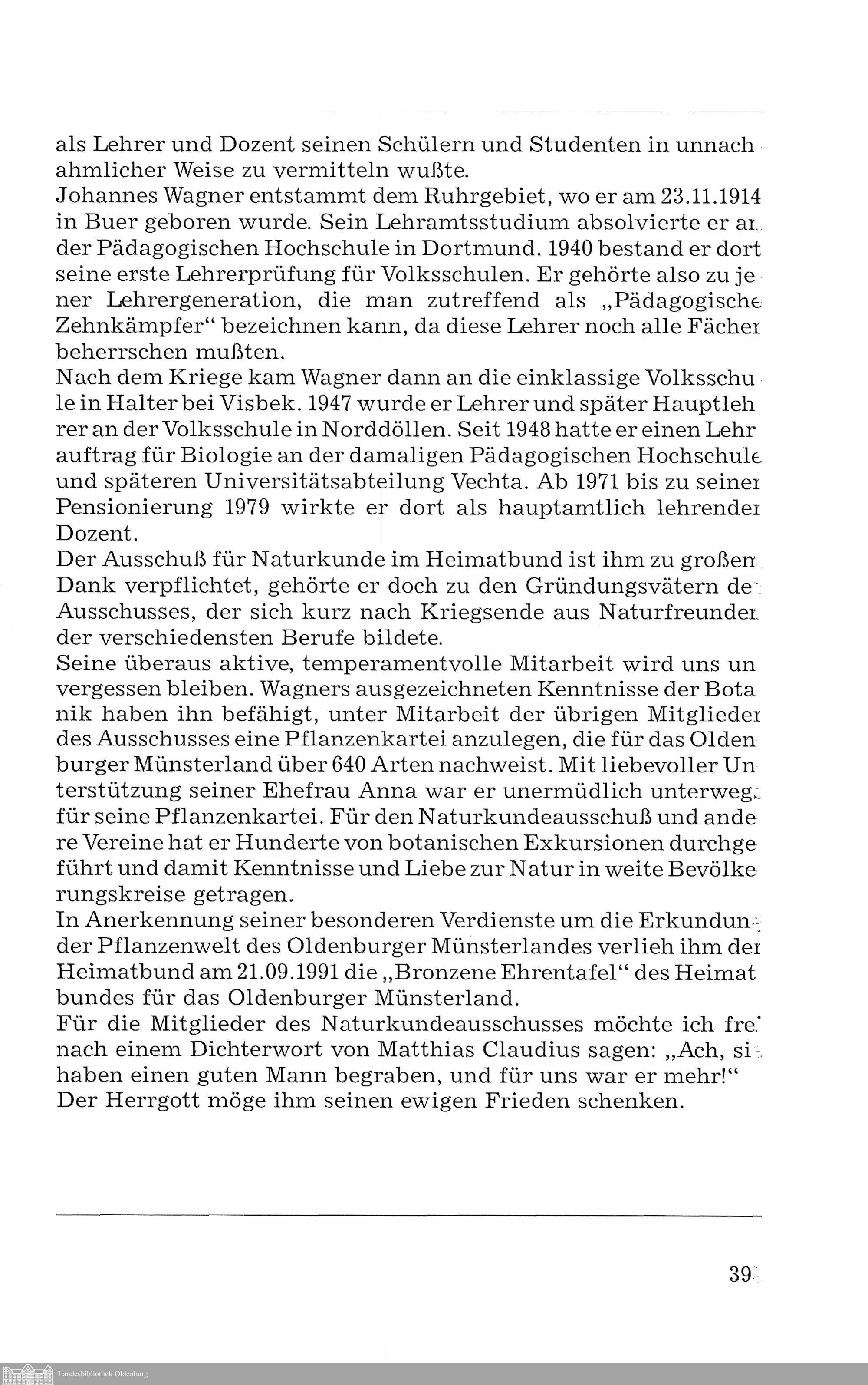 Werner Schulte: Johannes Wagner †. 1914 - 1992 [mit Abb.]