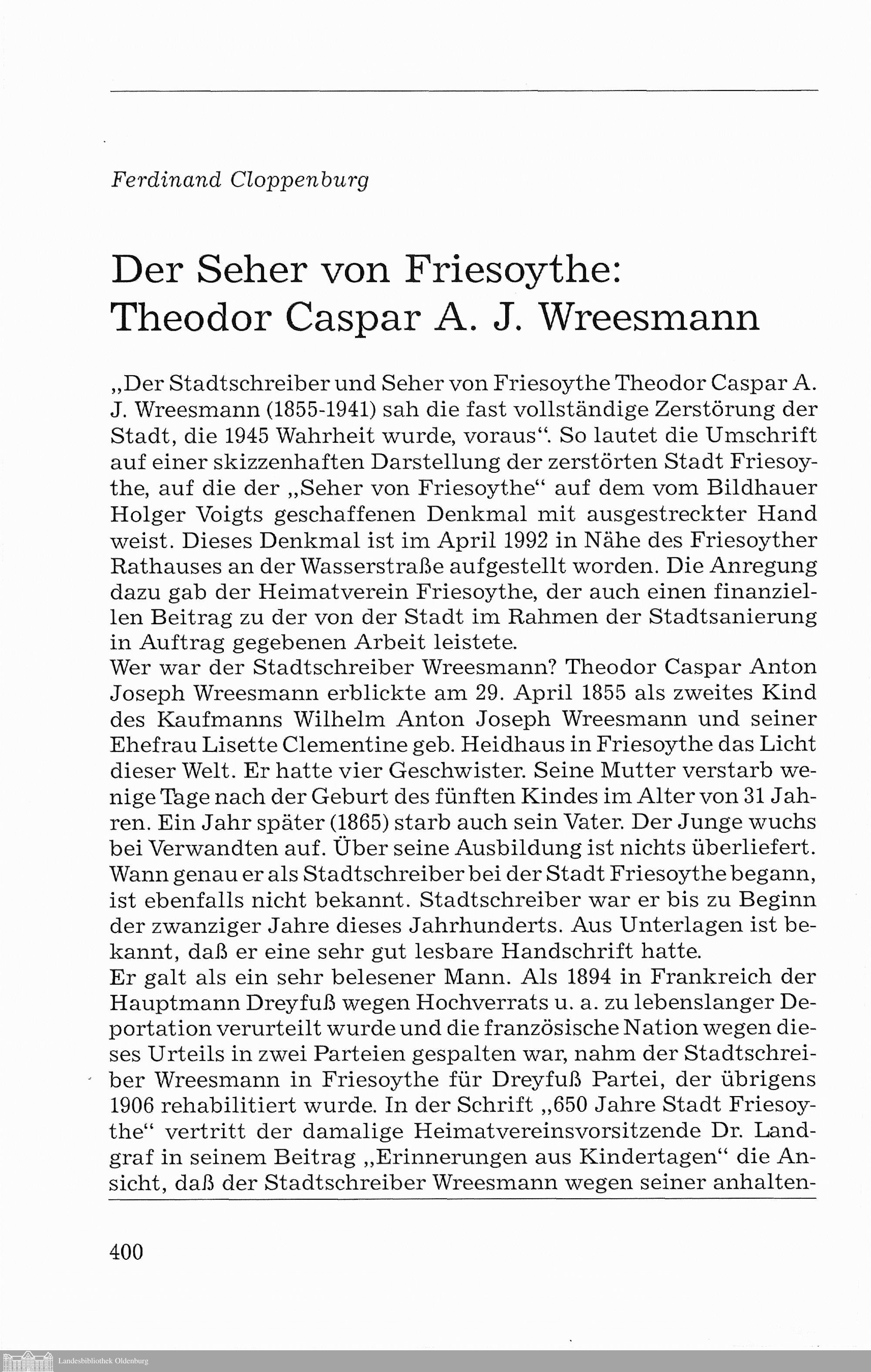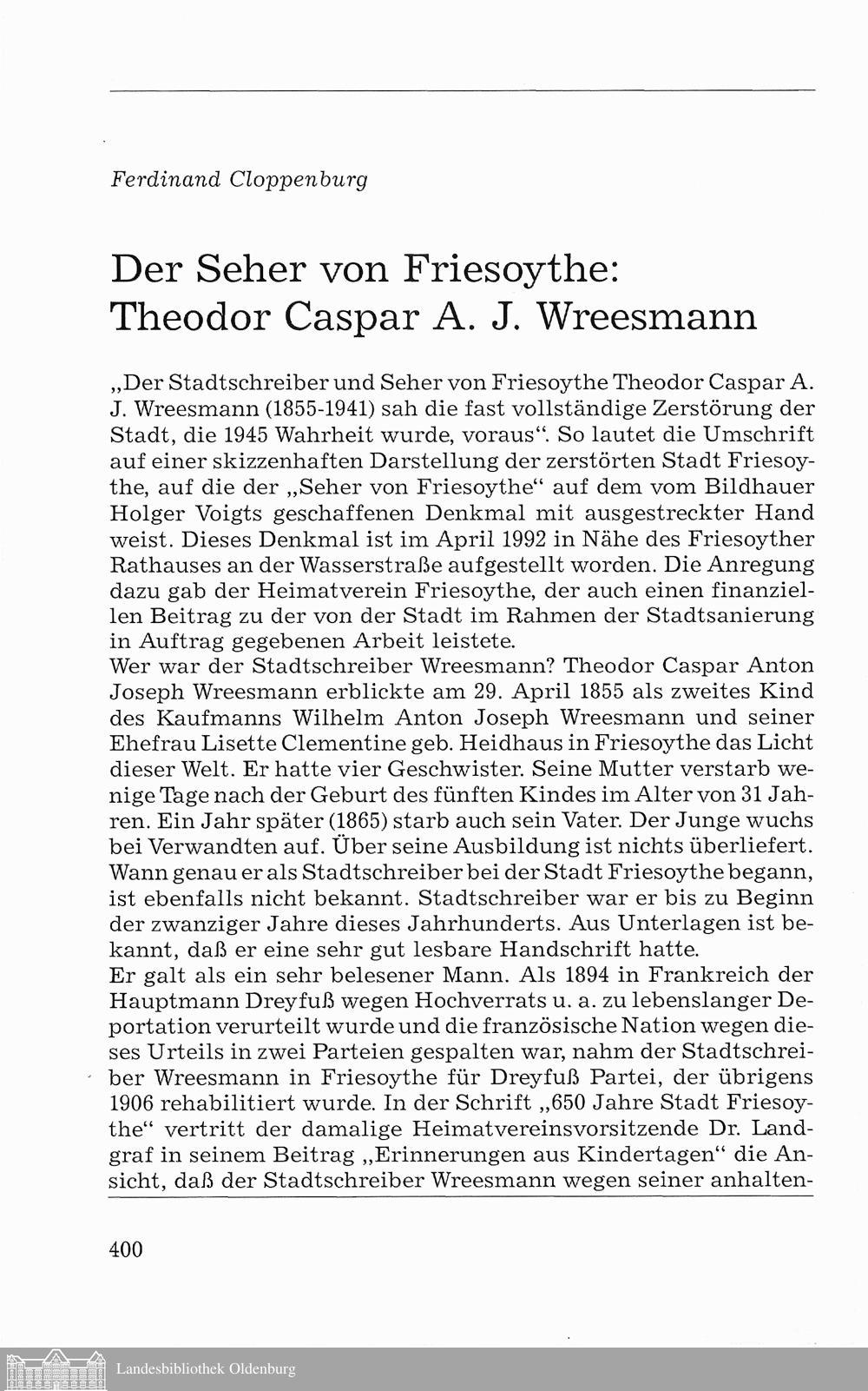 Ferdinand Cloppenburg: Der Seher von Friesoythe: Theodor Caspar A. J. Wreesmann