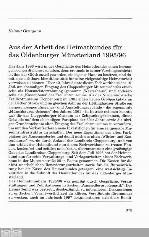 Helmut Ottenjann: Aus der Arbeit des Heimatbundes für das Oldenburger Münsterland...