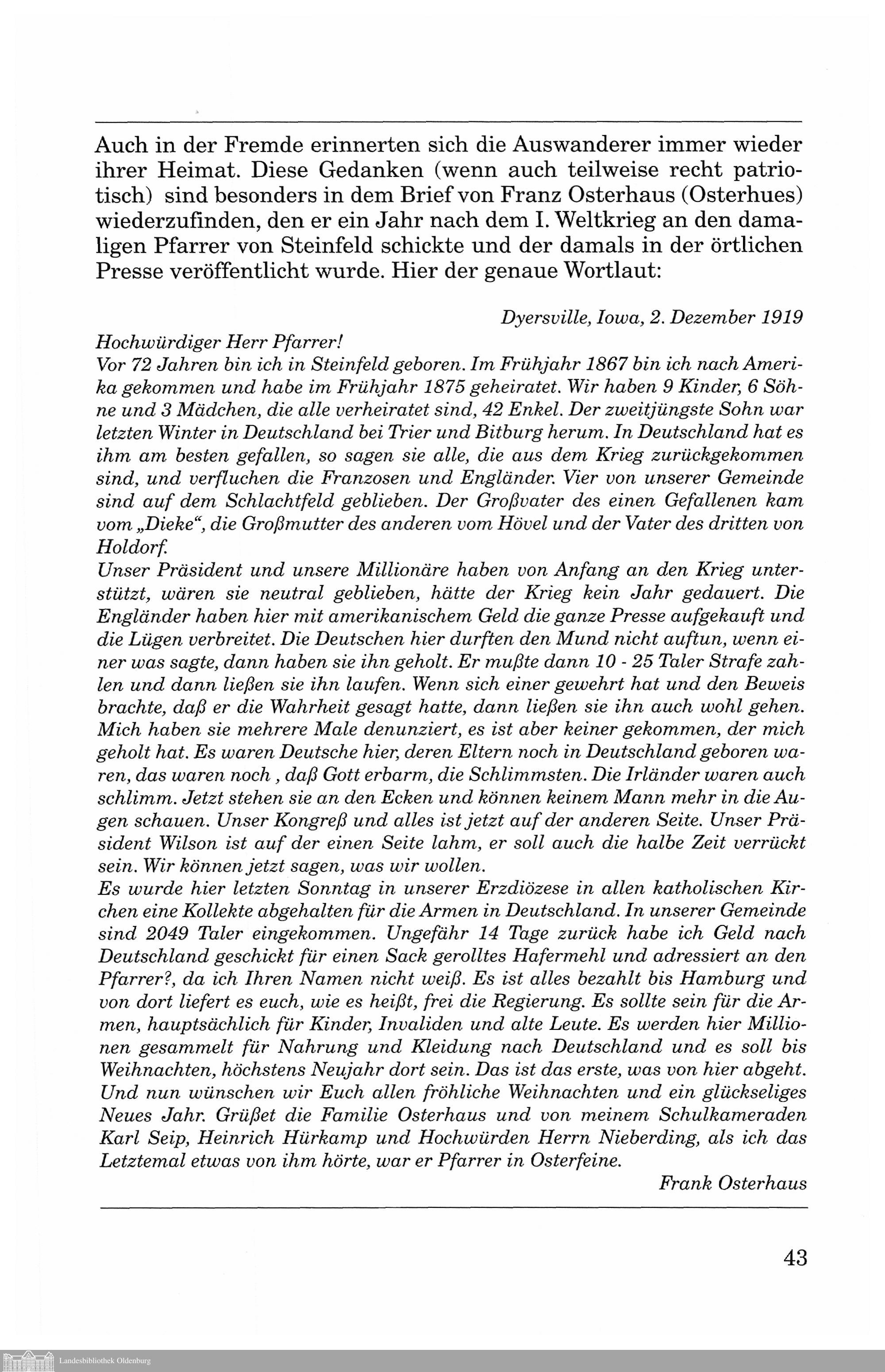 Stephan Honkamp: Südoldenburger Auswanderer ab 1845 in Iowa