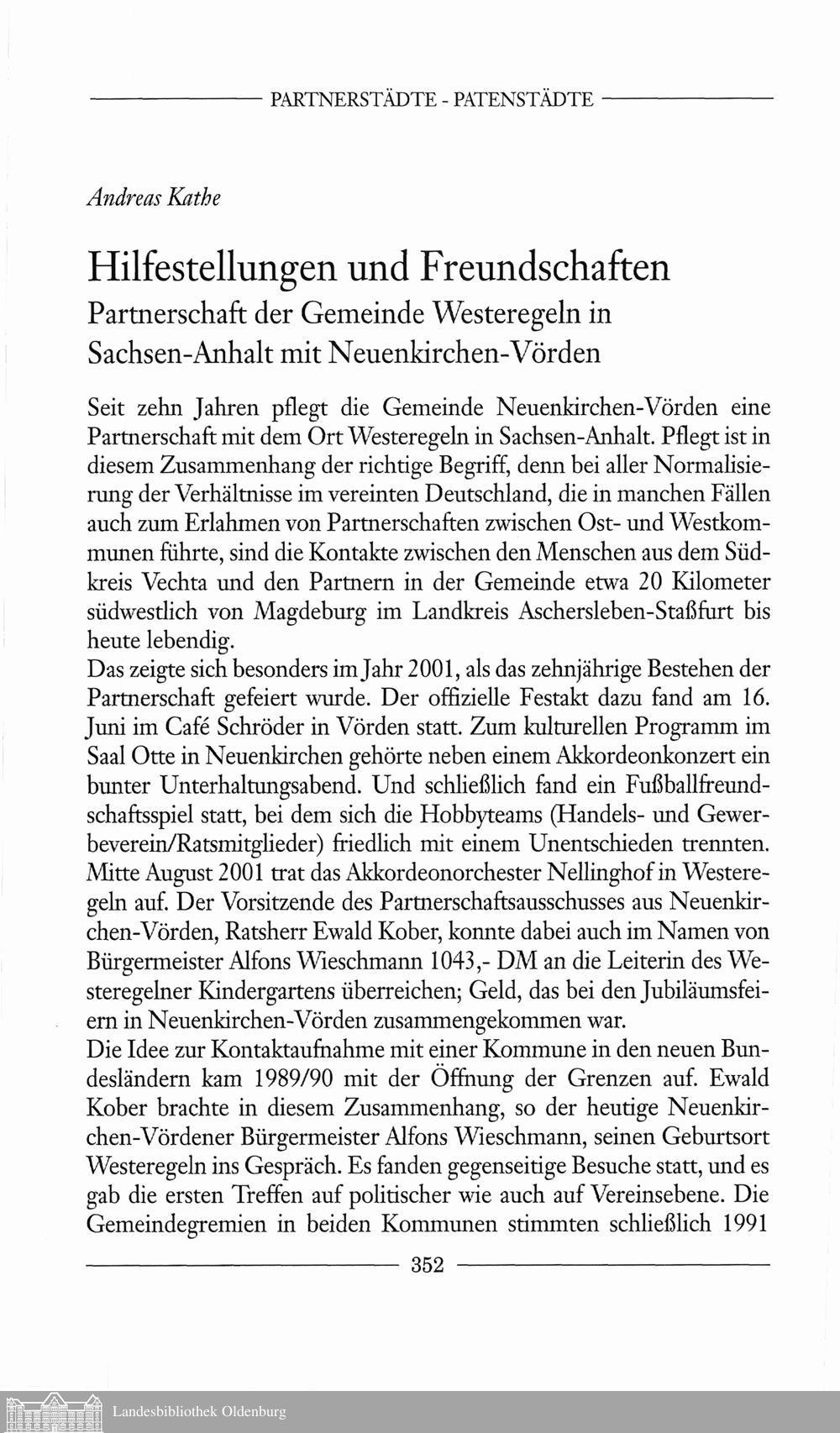 Andreas Käthe: Hilfestellungen und Freundschaften. Partnerschaft der Gemeinde Westeregeln...