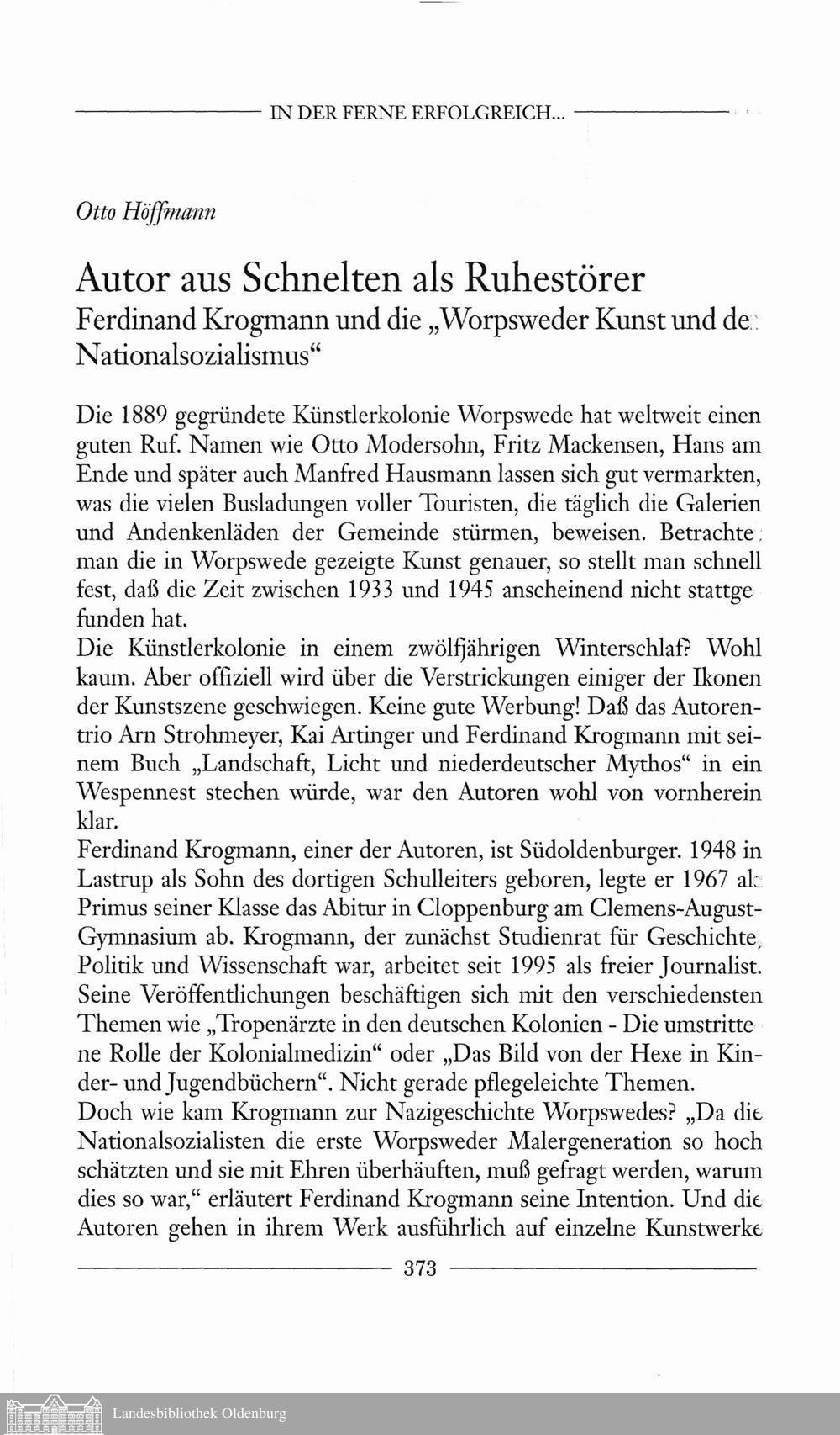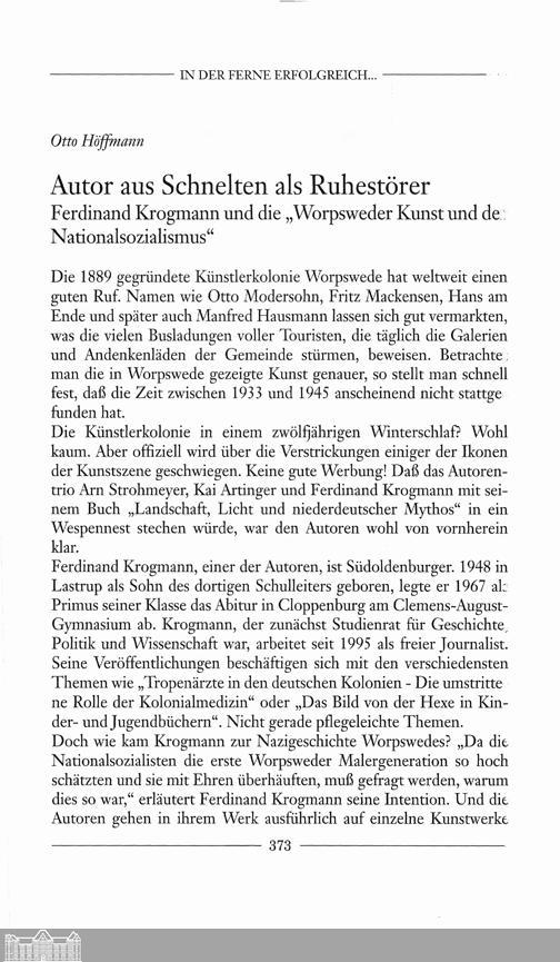 Otto Höffmann: Autor aus Schnelten als Ruhestörer. Ferdinand Krogmann und die "Worpsweder...