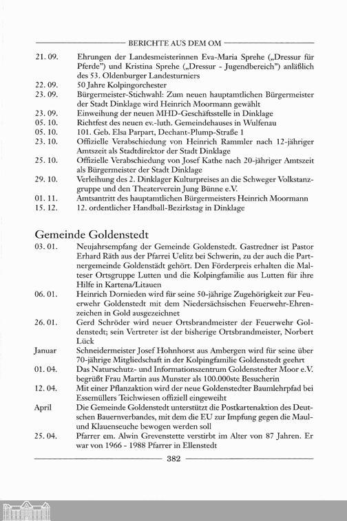 Aus der Chronik der Gemeinden des Oldenburger Münsterlandes für das Jahr 2001