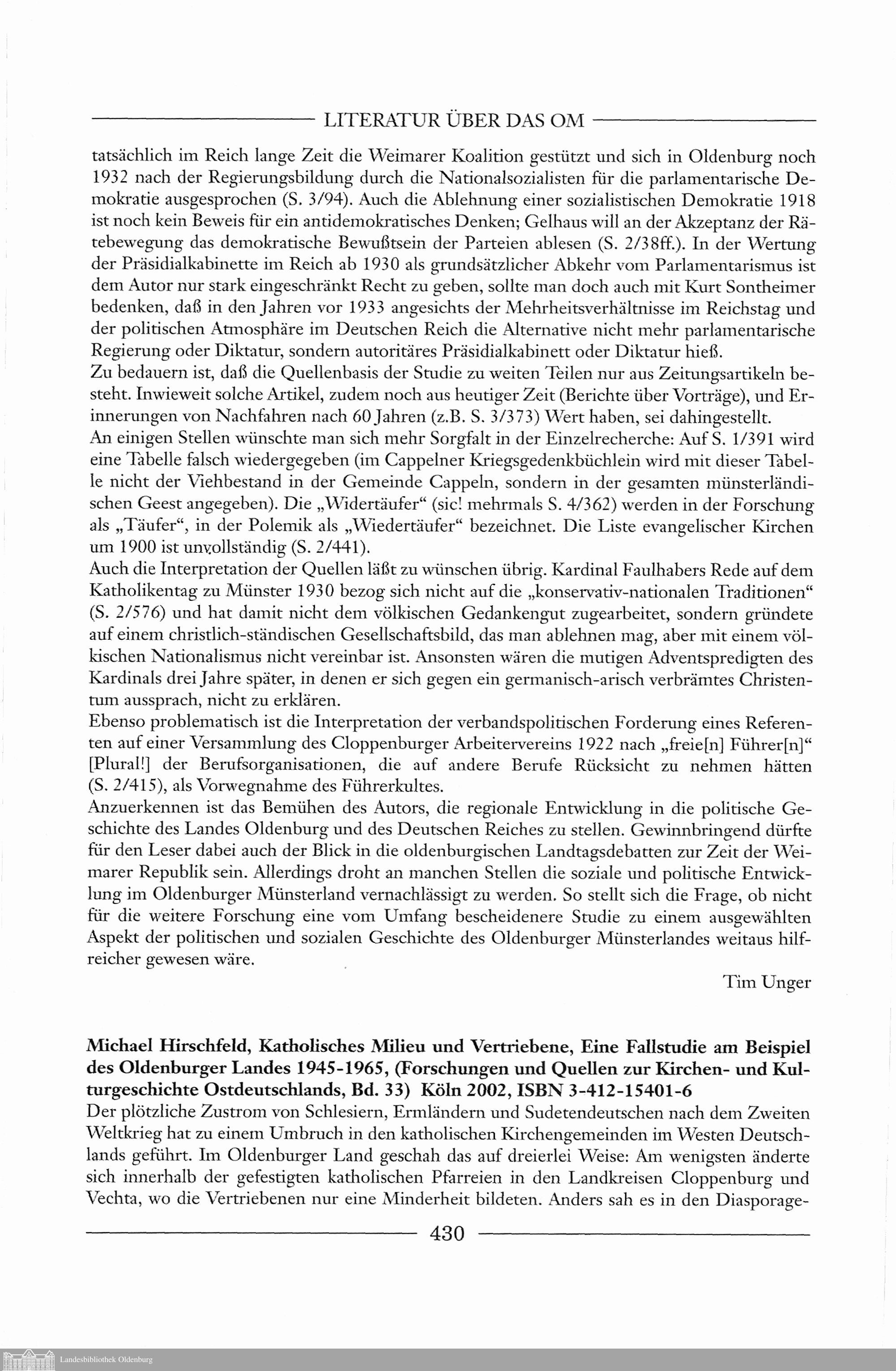 Literatur über das Oldenburger Münsterland