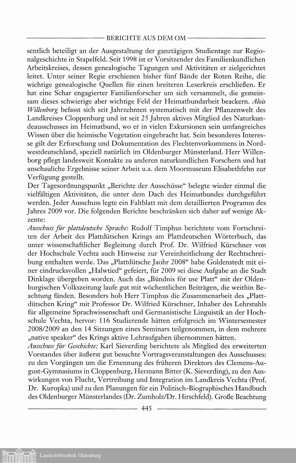 Engelbert Beckermann: Aus der Arbeit des Heimatbundes für das Oldenburger Münsterland...