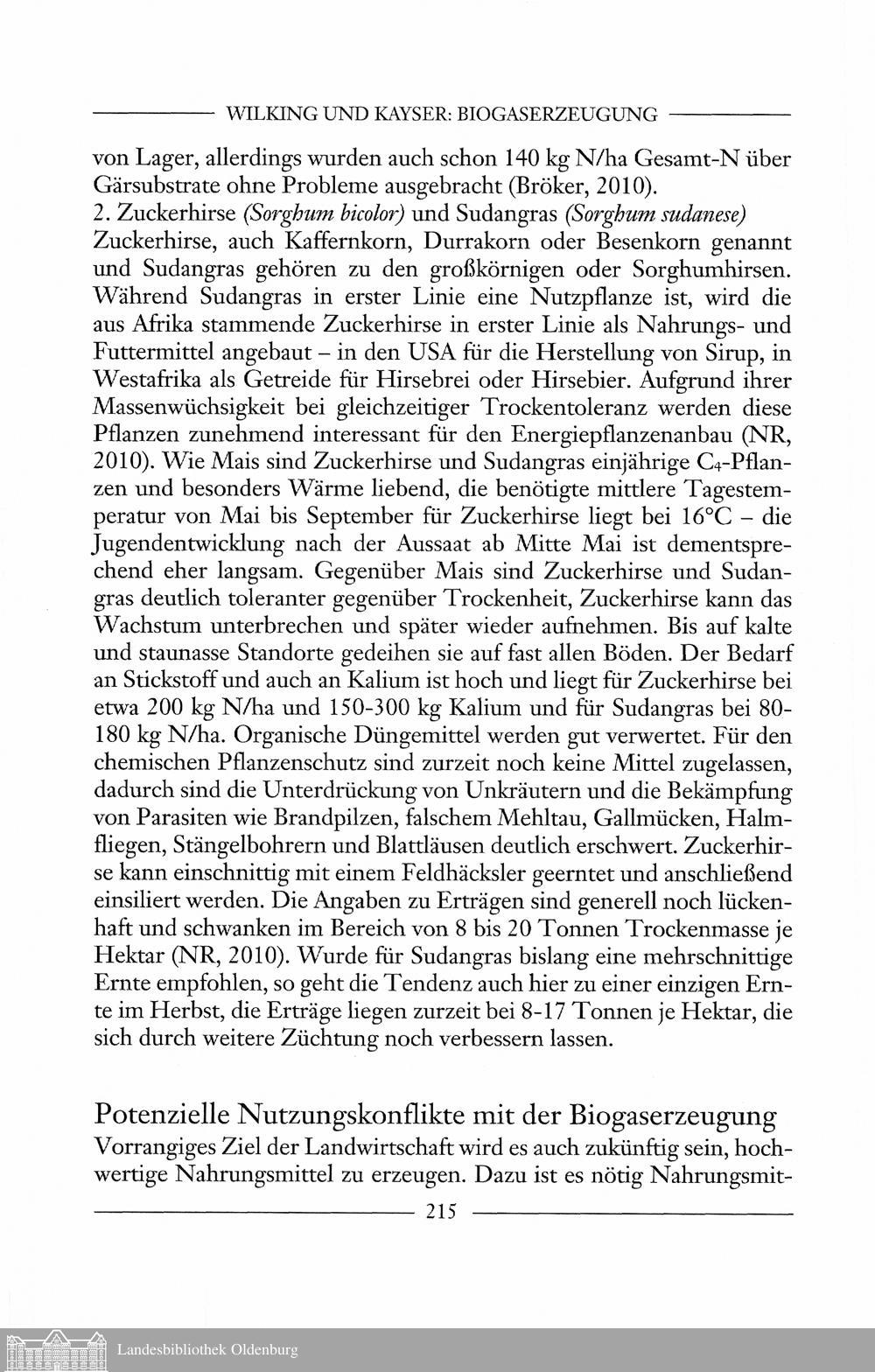 Johannes Wilking und Manfred Kayser: Biogaserzeugung im Oldenburger Münsterland -...