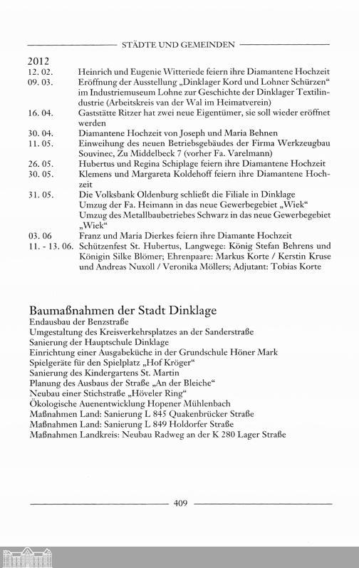 Aus der Chronik der Städte und Gemeinden des Oldenburger Münsterlandes