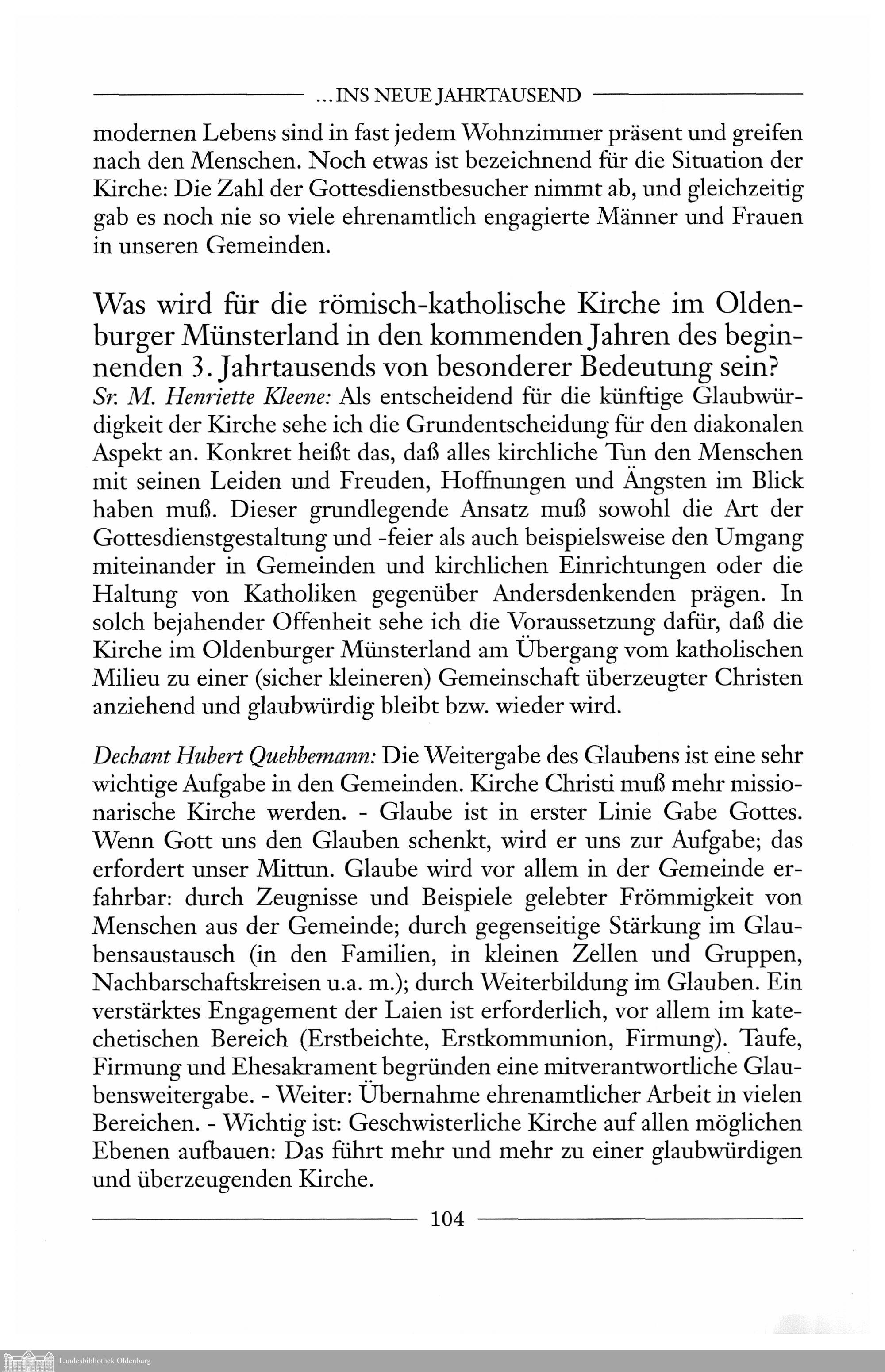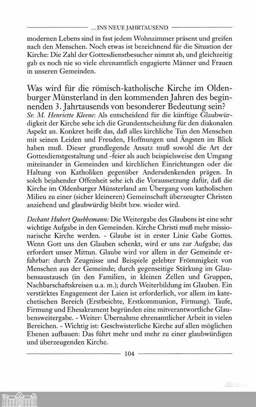 Peter Waschinski: Interviews zur Situation der römisch-katholischen Kirche im Oldenburger...